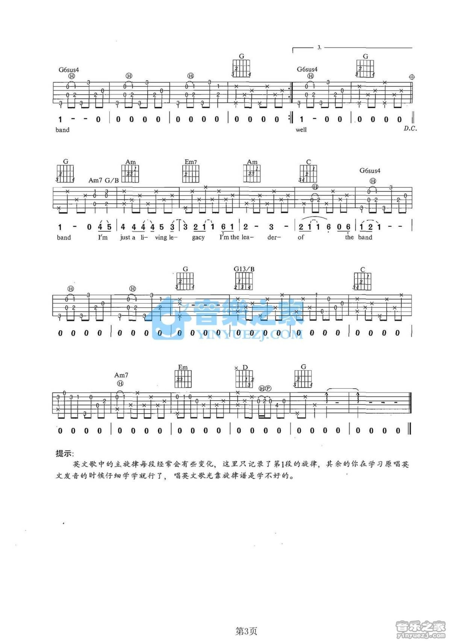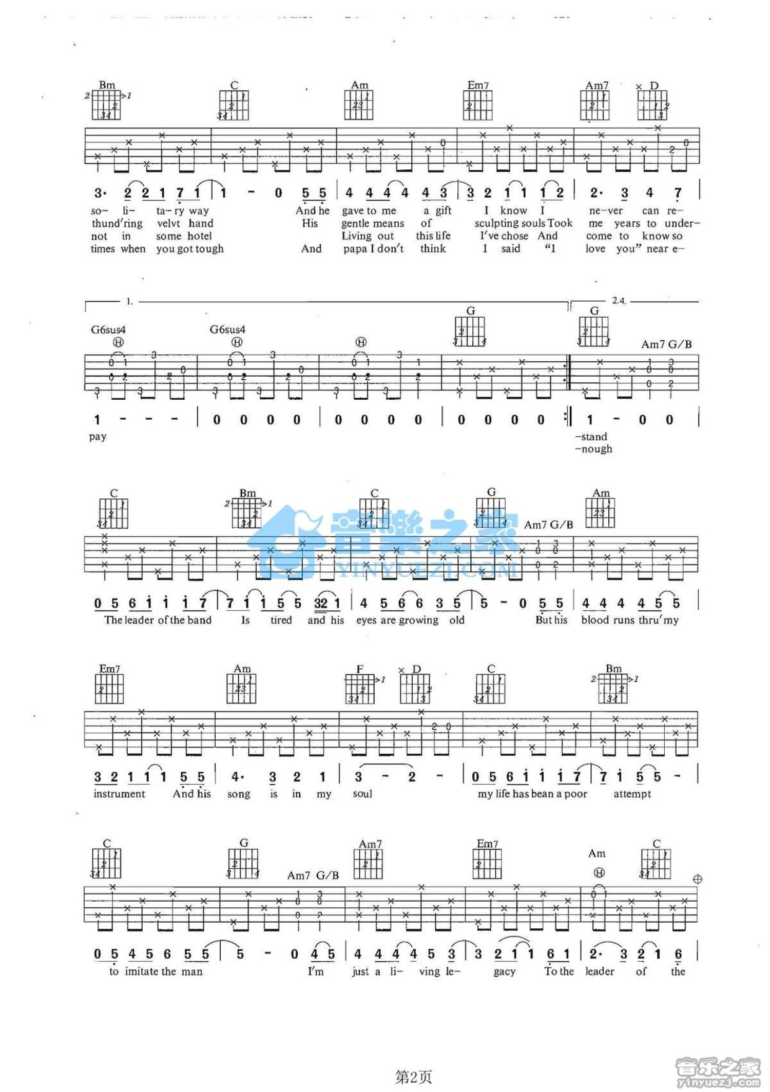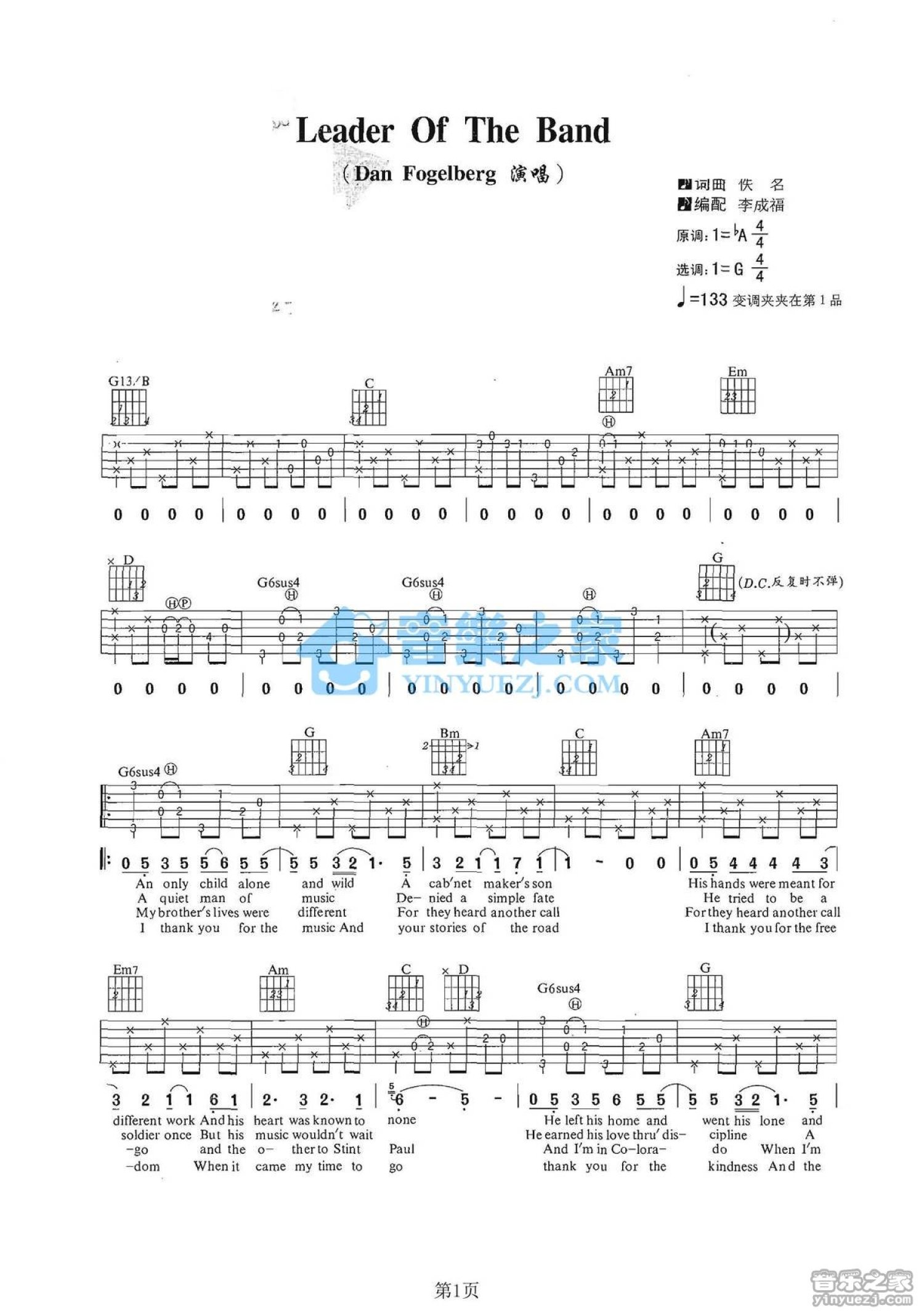 曲谱介绍: G调版DanFogelberg《LeaderOfTheBand》吉他弹唱六线谱