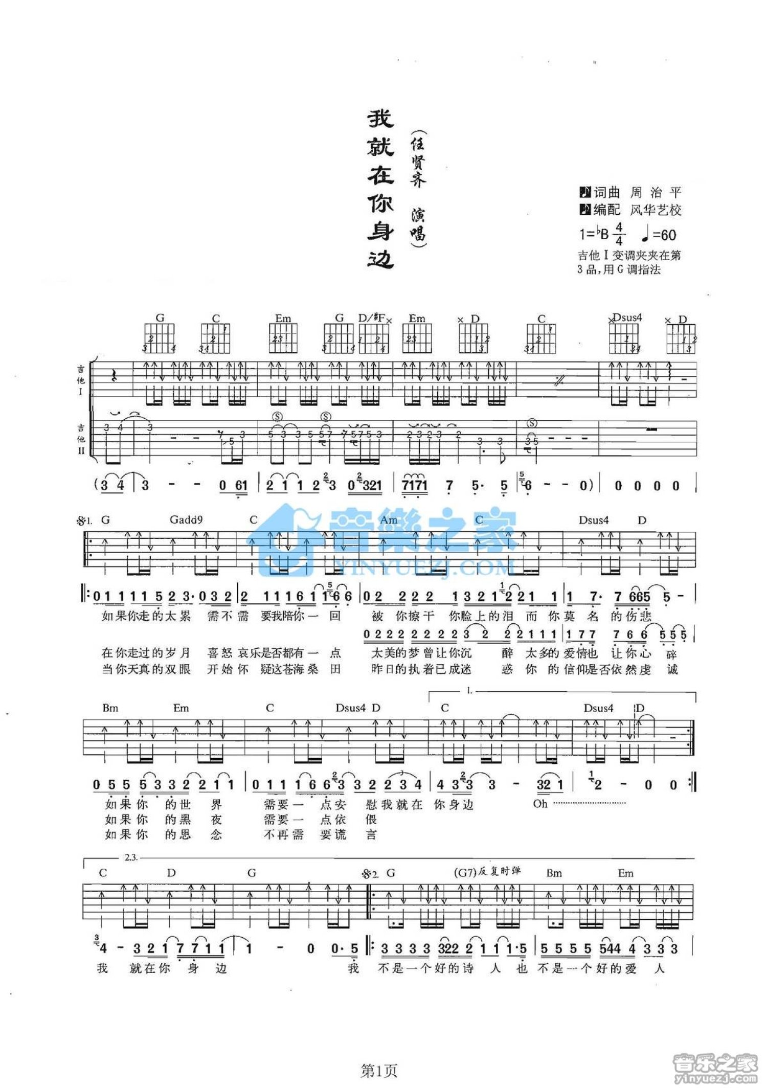 曲谱介绍: G调《我就在你身边》吉他弹唱六线谱