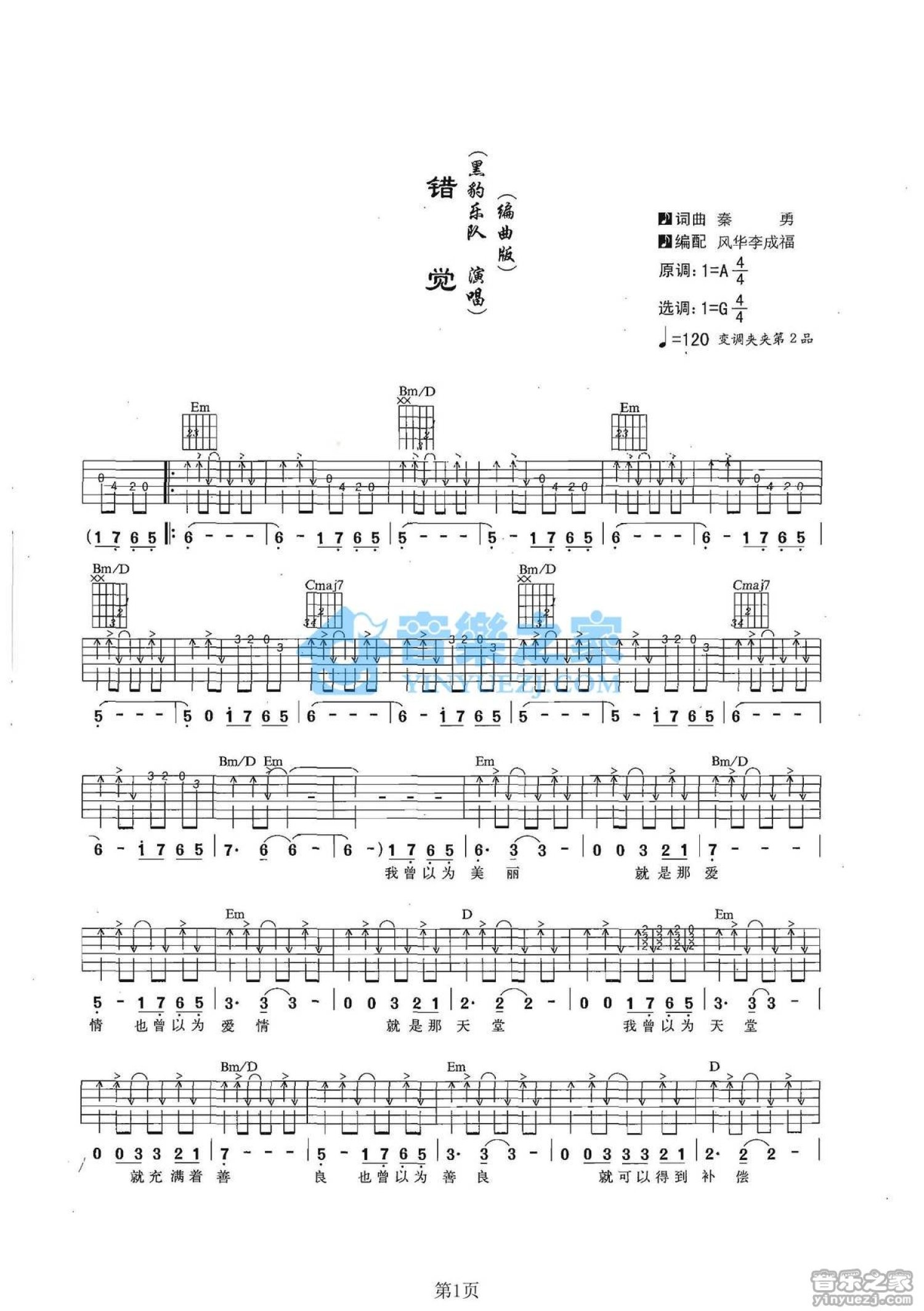 曲谱介绍: G调双吉他编曲版黑豹《错觉》吉他弹唱六线谱