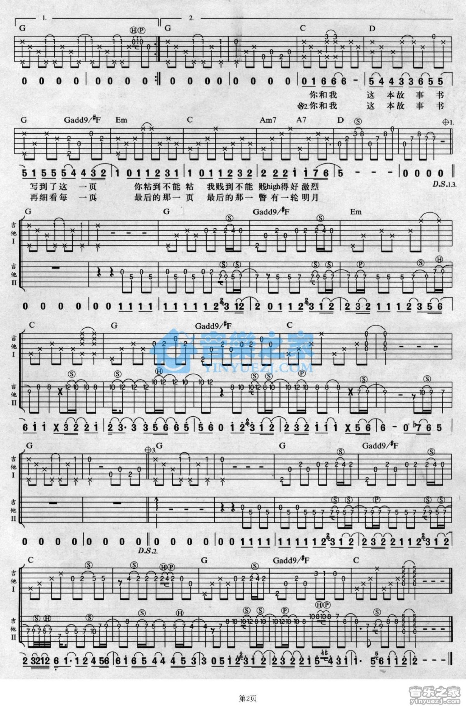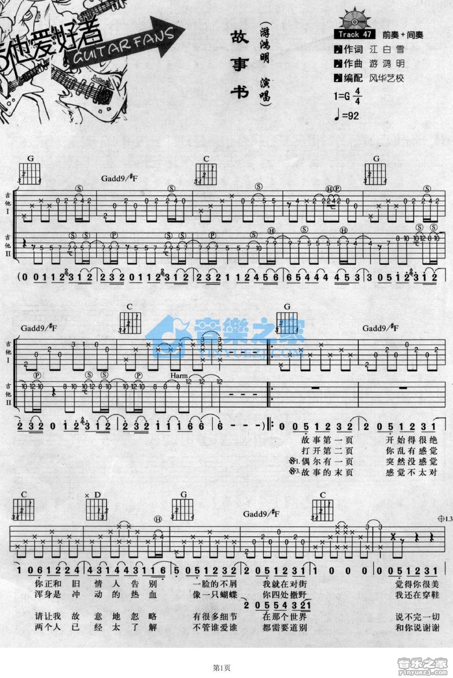 曲谱介绍: G调双吉他版游鸿明《故事书》吉他弹唱六线谱