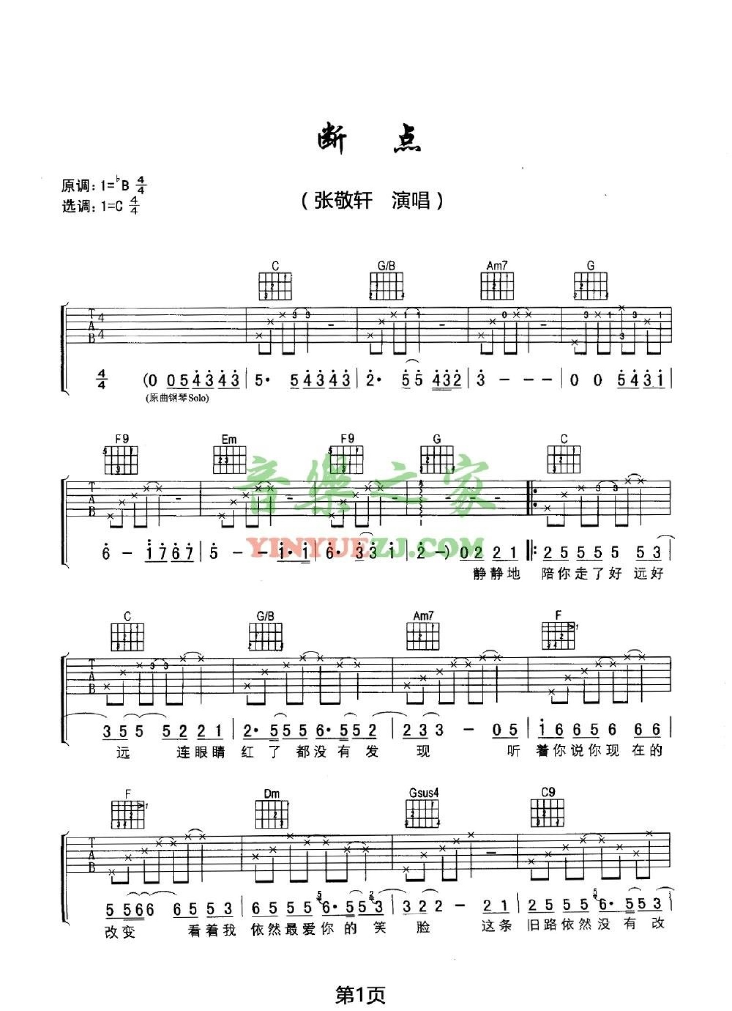 曲谱介绍: 张敬轩《断点》吉他谱