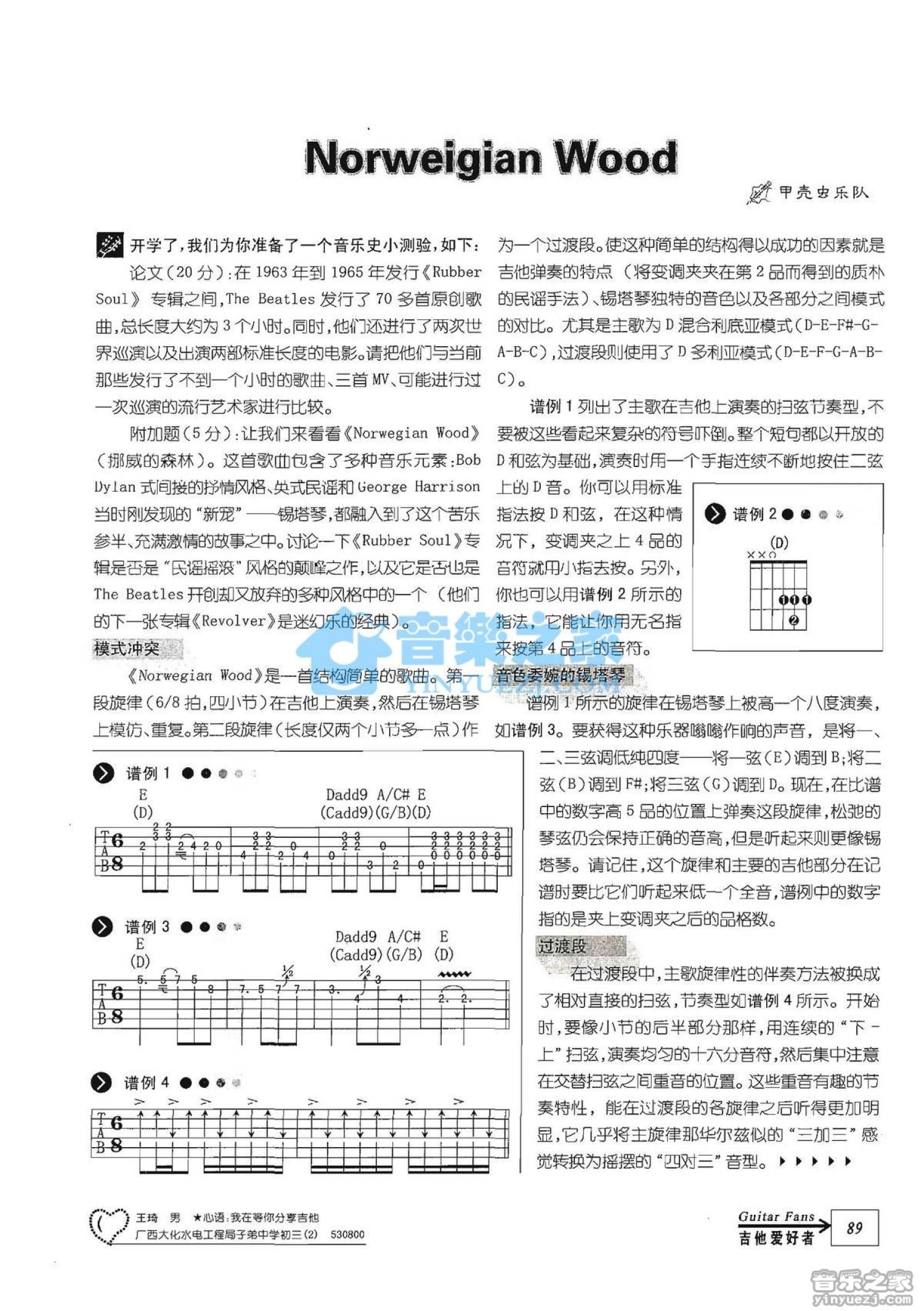 Norwegian Wood吉他谱 - The Beatles - 吉他弹唱谱 - 双吉他版