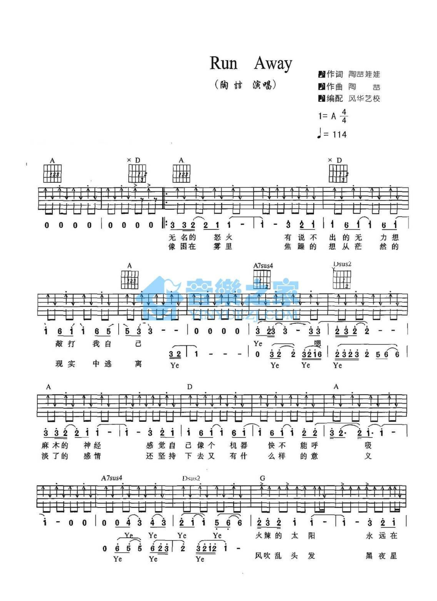 Run Away吉他谱 - 陶喆 - A调吉他弹唱谱