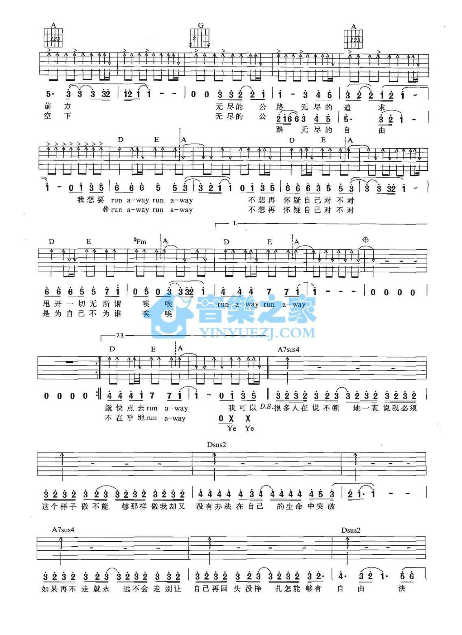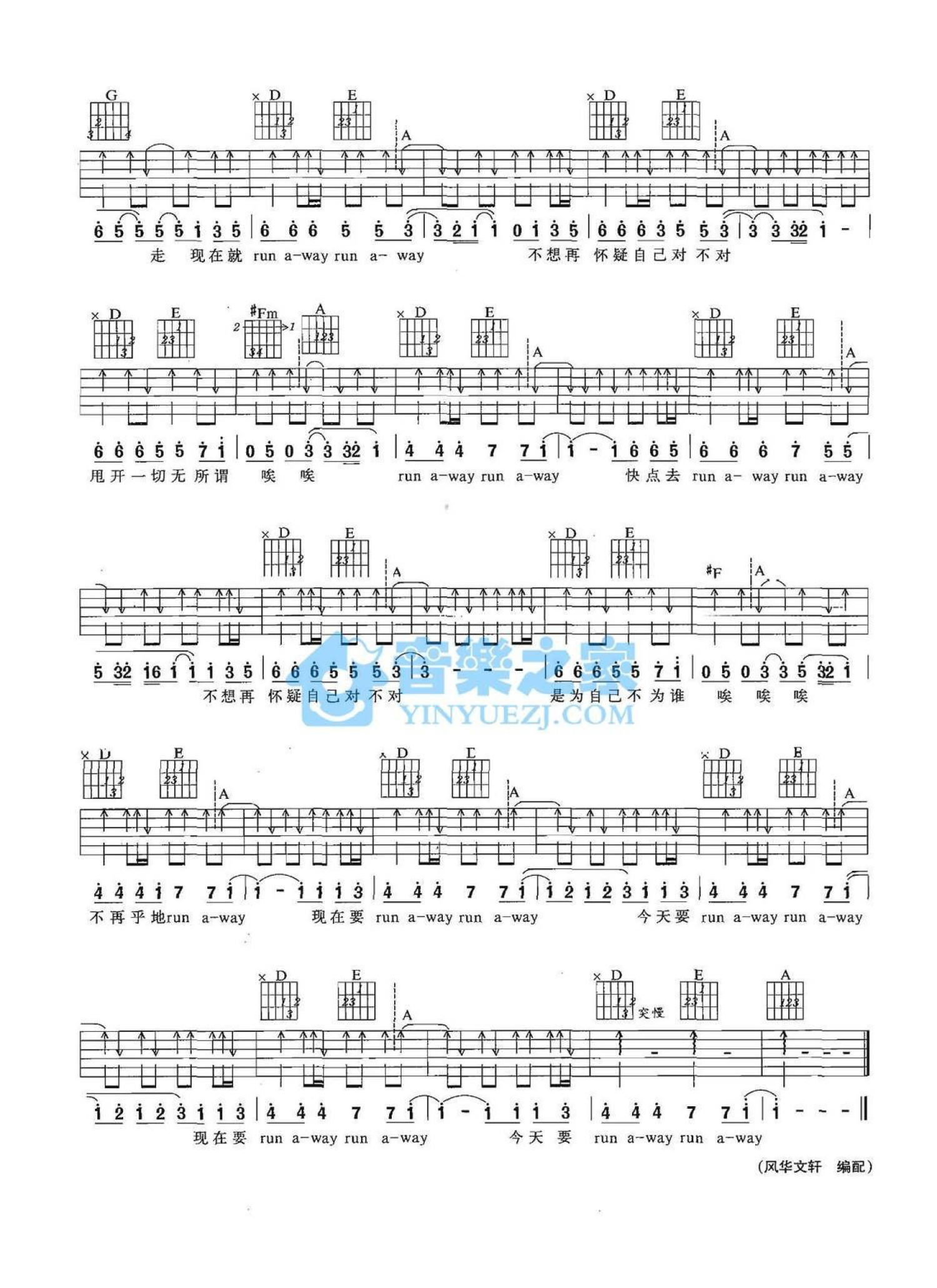 当前位置:琴谱网>吉他弹唱>Run Away