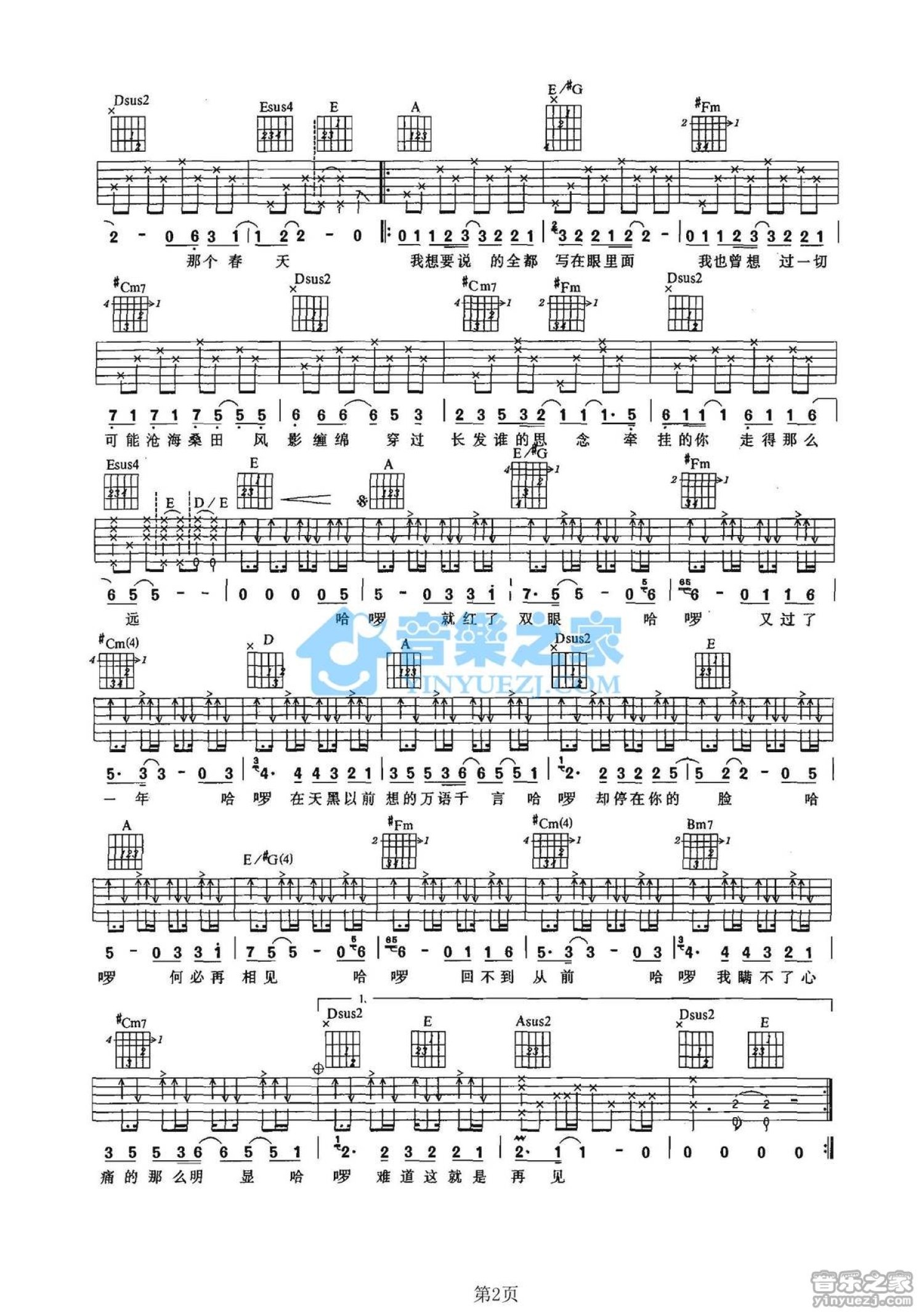 哈啰吉他谱 - 阿杜 - 吉他弹唱谱 - 双吉他版
