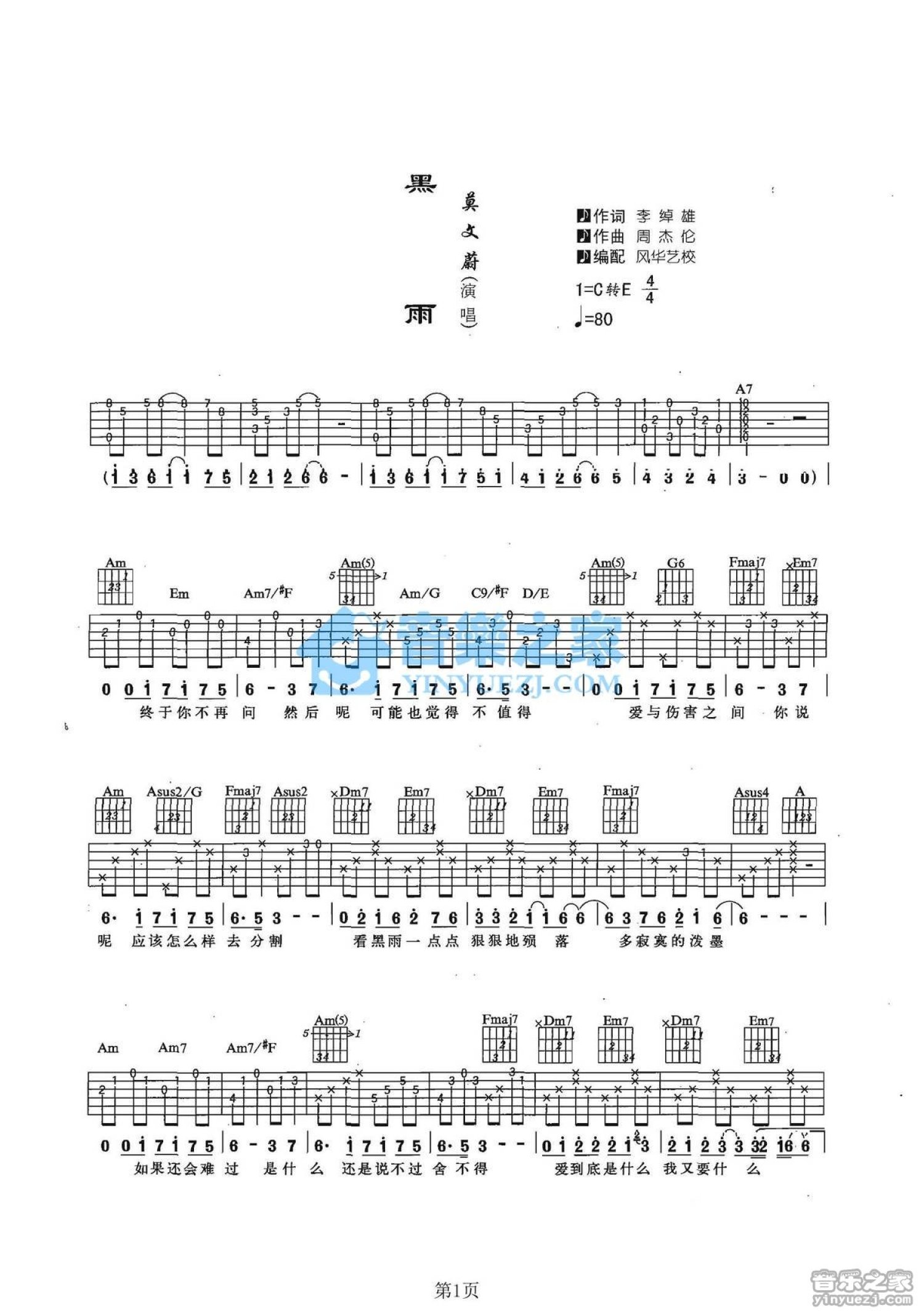 当前位置:琴谱网>吉他弹唱>黑雨
