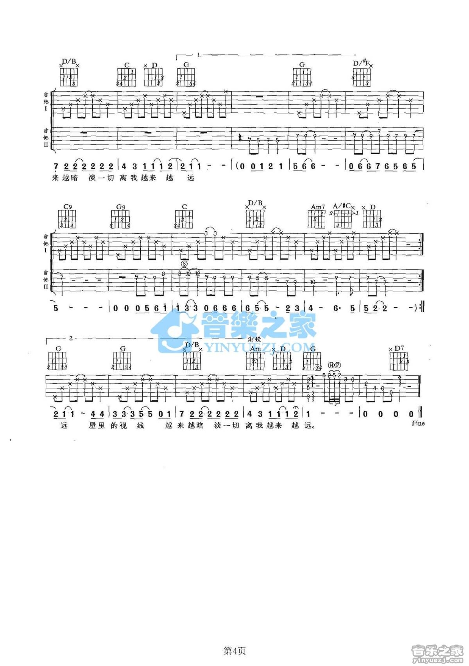 当前位置:琴谱网>吉他弹唱>屋子