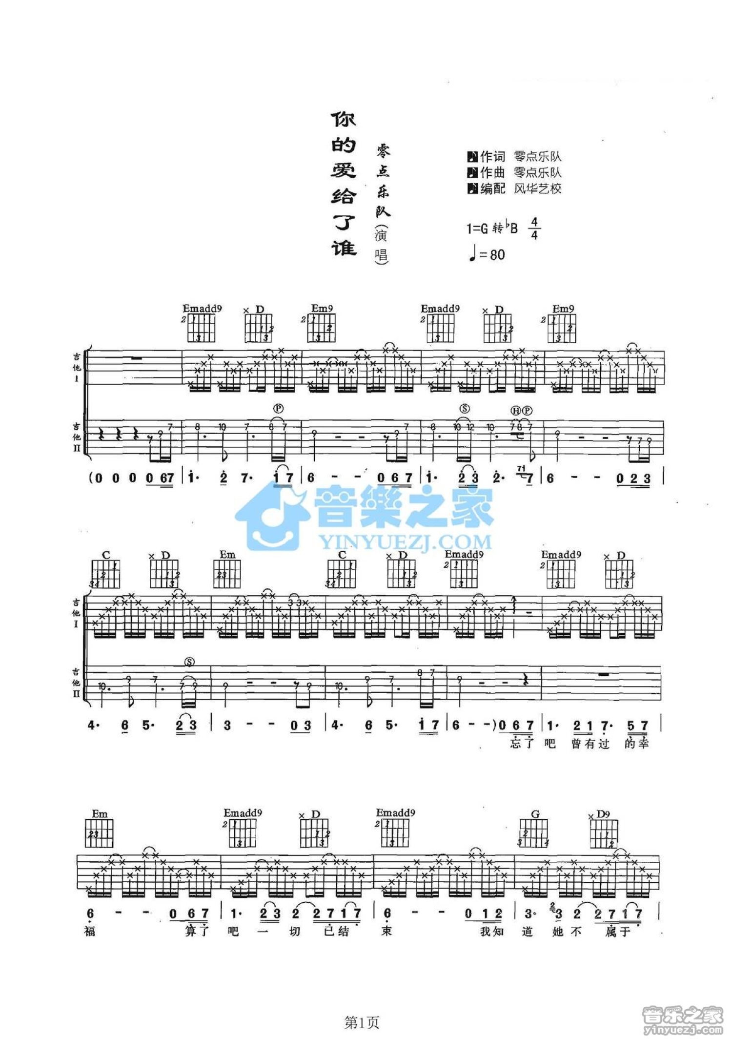 你的爱给了谁吉他谱 - 零点乐队 - 吉他弹唱谱 - 双吉他版