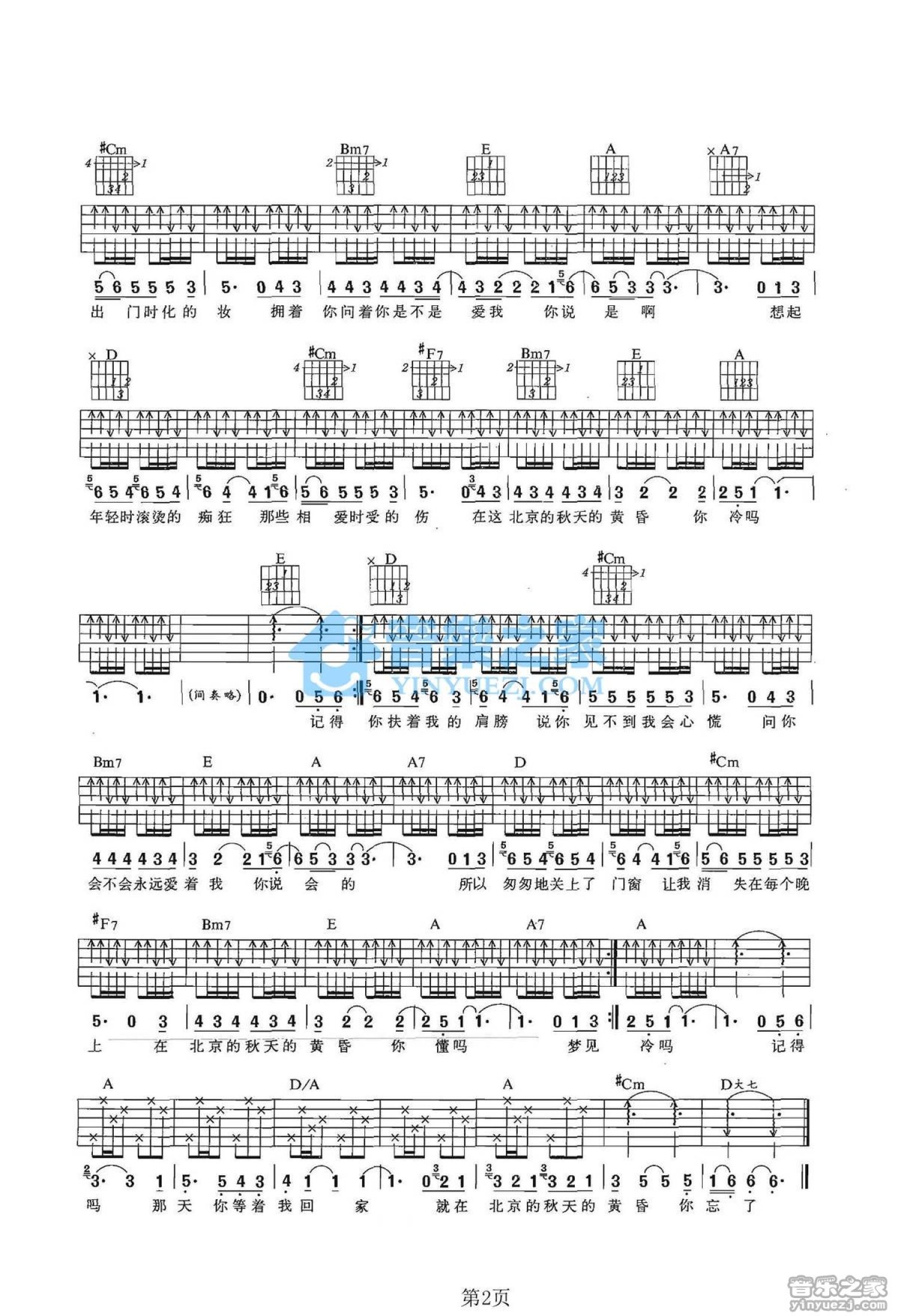 当前位置:琴谱网>吉他弹唱>北京秋天的黄昏