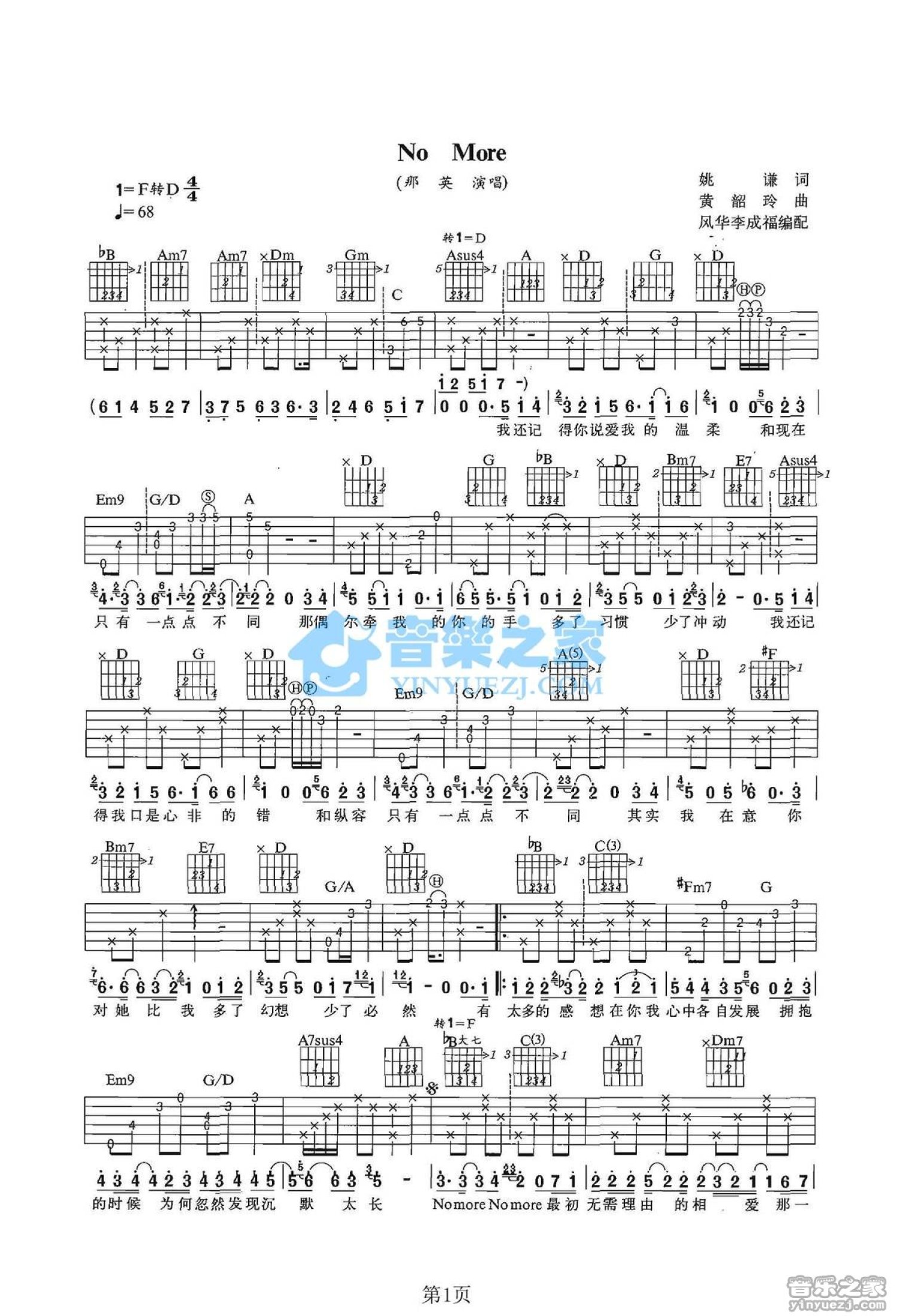 No More吉他谱 - 那英 - 吉他弹唱谱 - 双吉他版