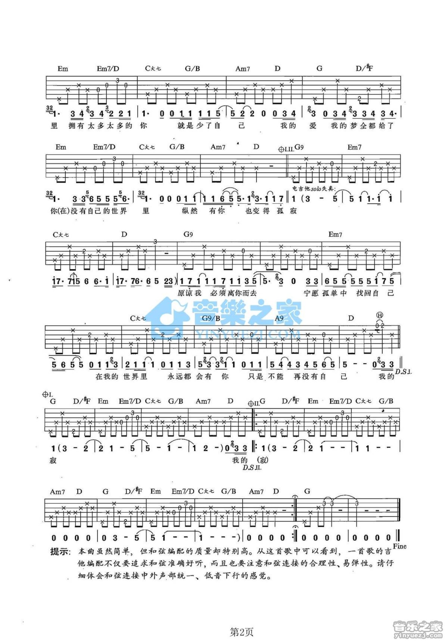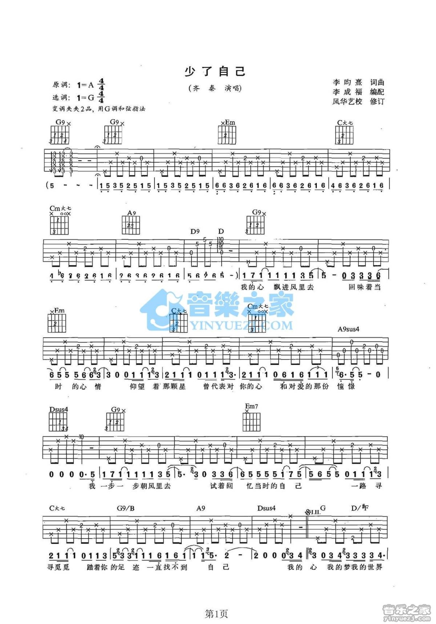 曲谱介绍: G调版齐秦《少了自己》吉他弹唱六线谱