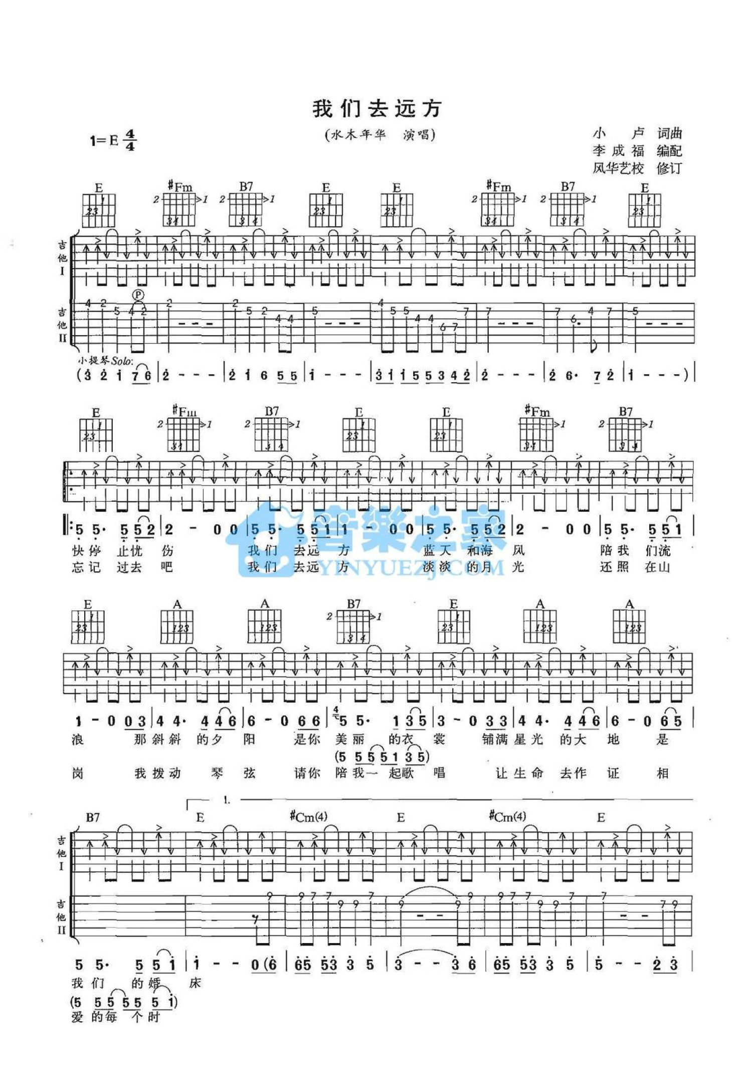 我们去远方吉他谱 - 水木年华 - E调吉他弹唱谱 - 双吉他版