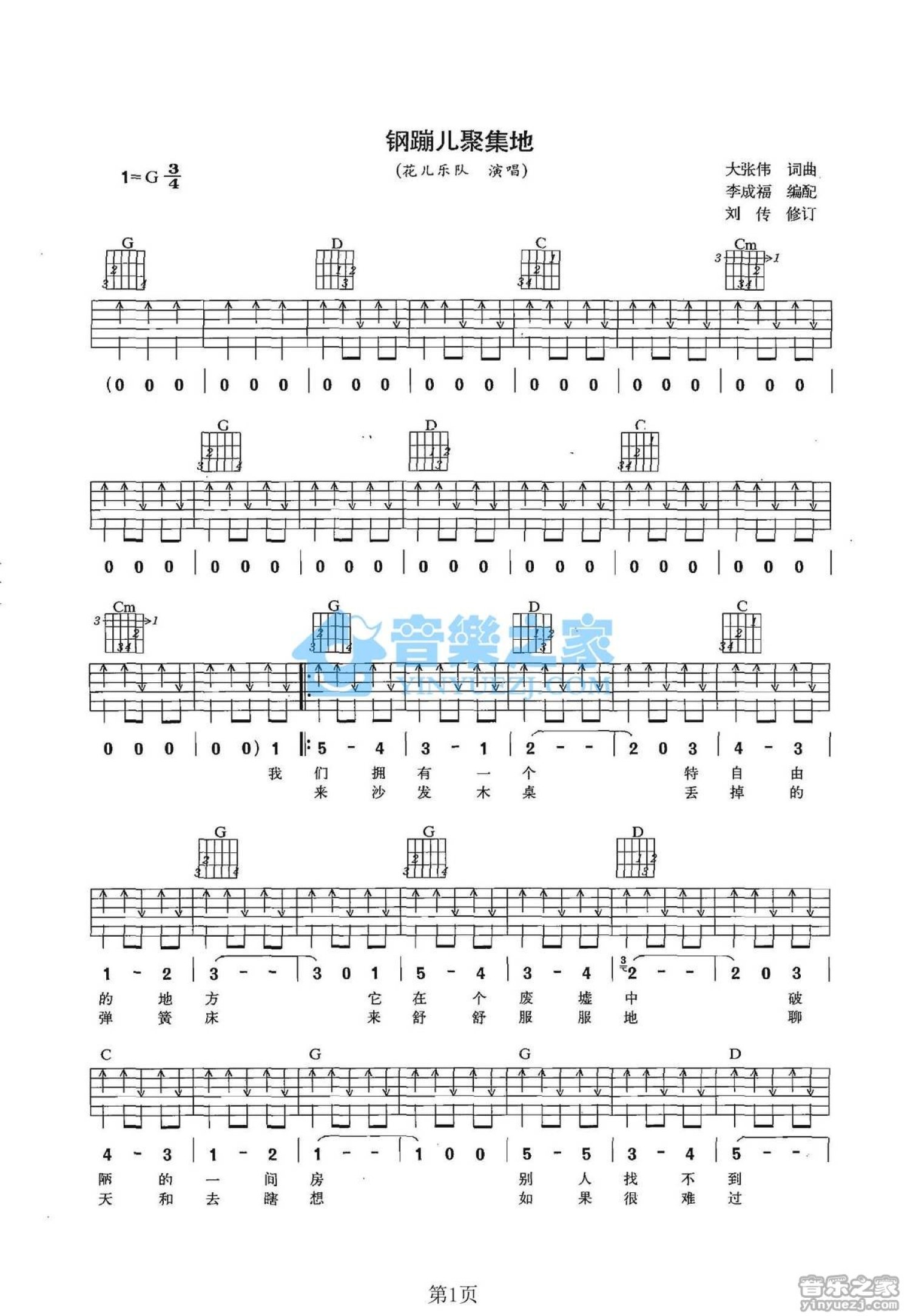 曲谱介绍: G调版花儿乐队《钢蹦儿聚集地》吉他弹唱六线谱