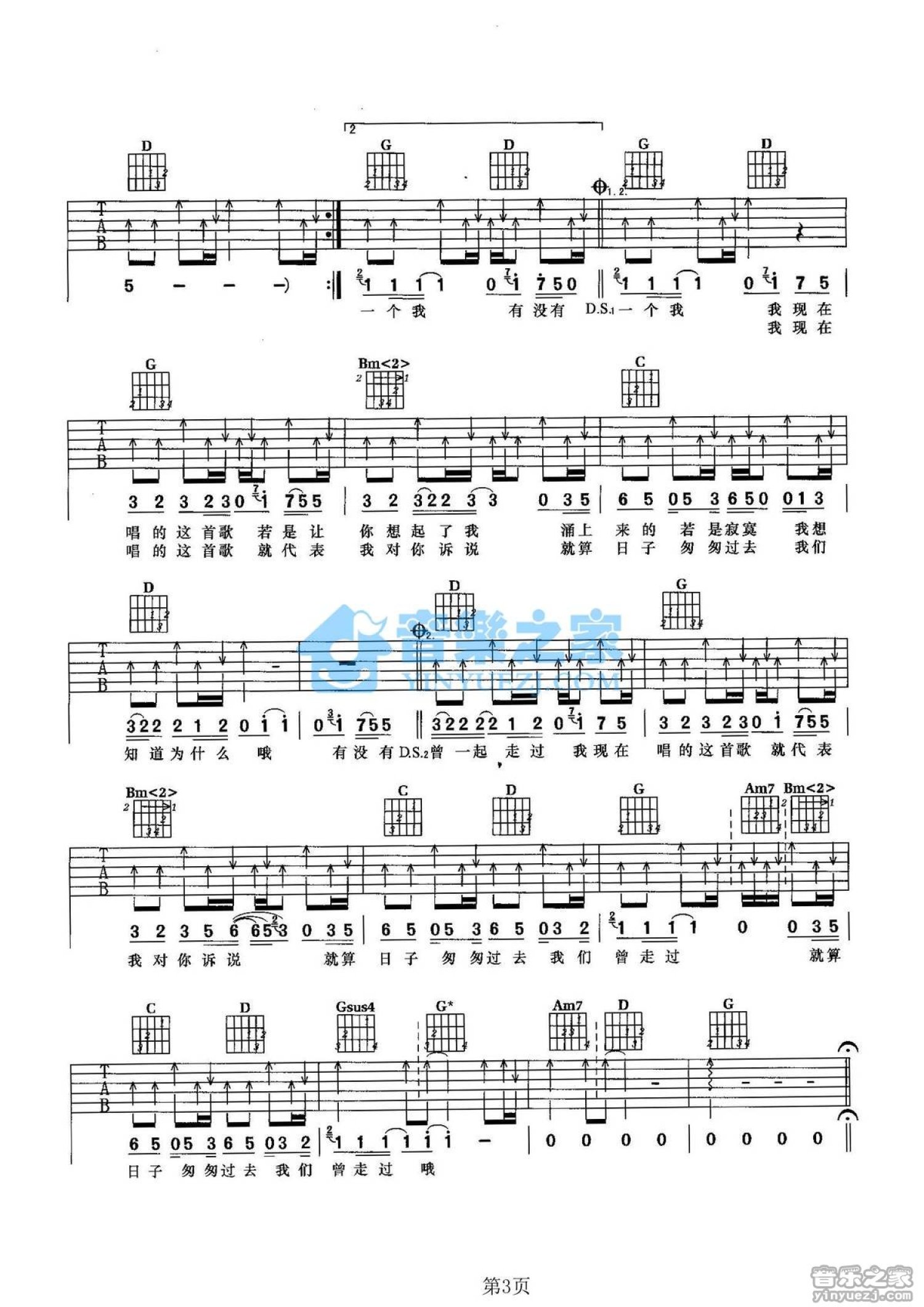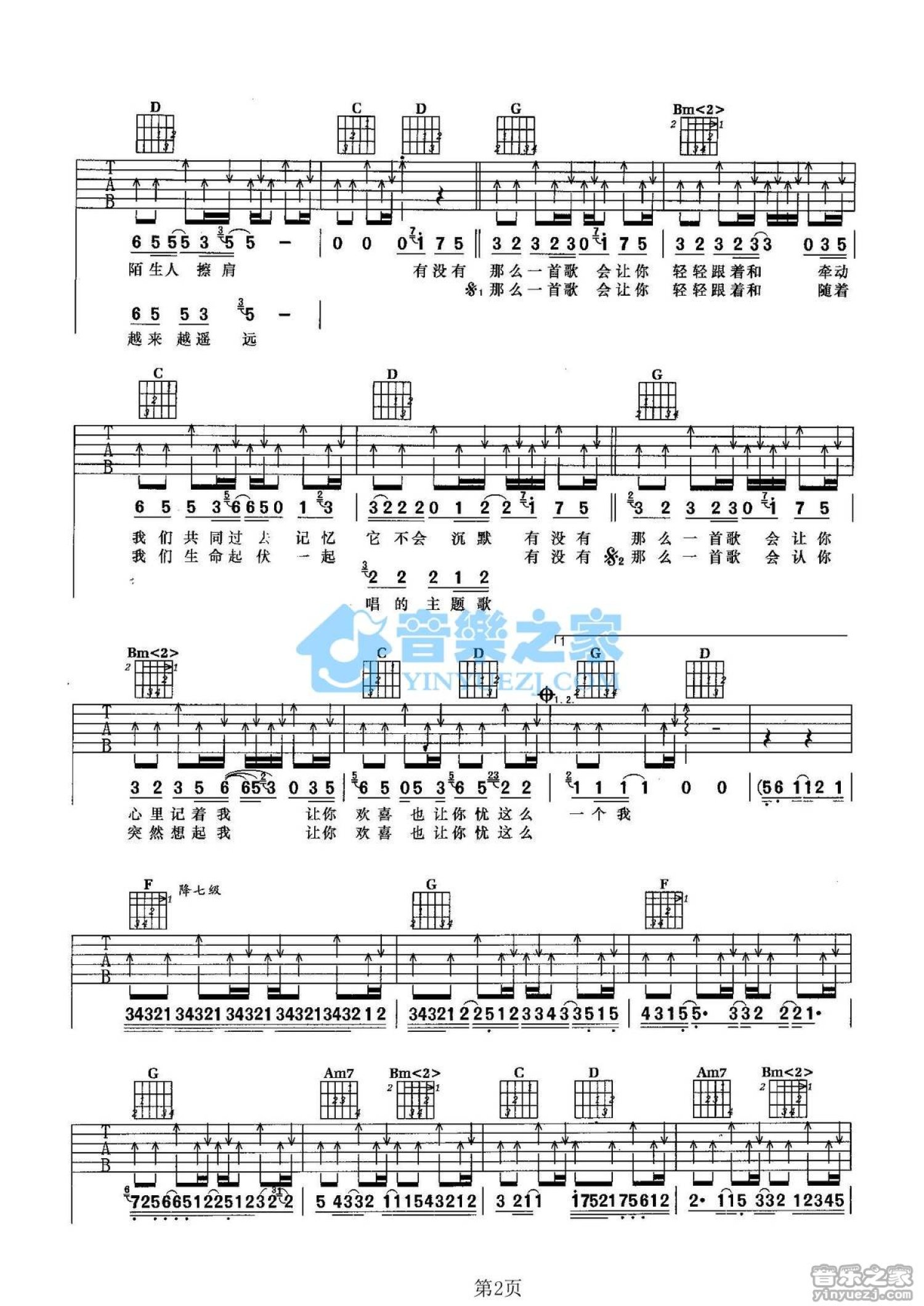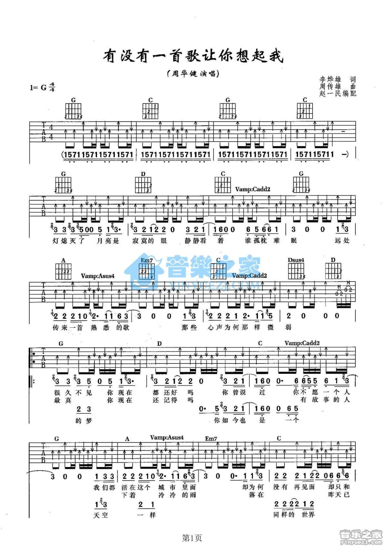 曲谱介绍: G调版周华健《有没有一首歌让你想起我》吉他弹唱六线谱