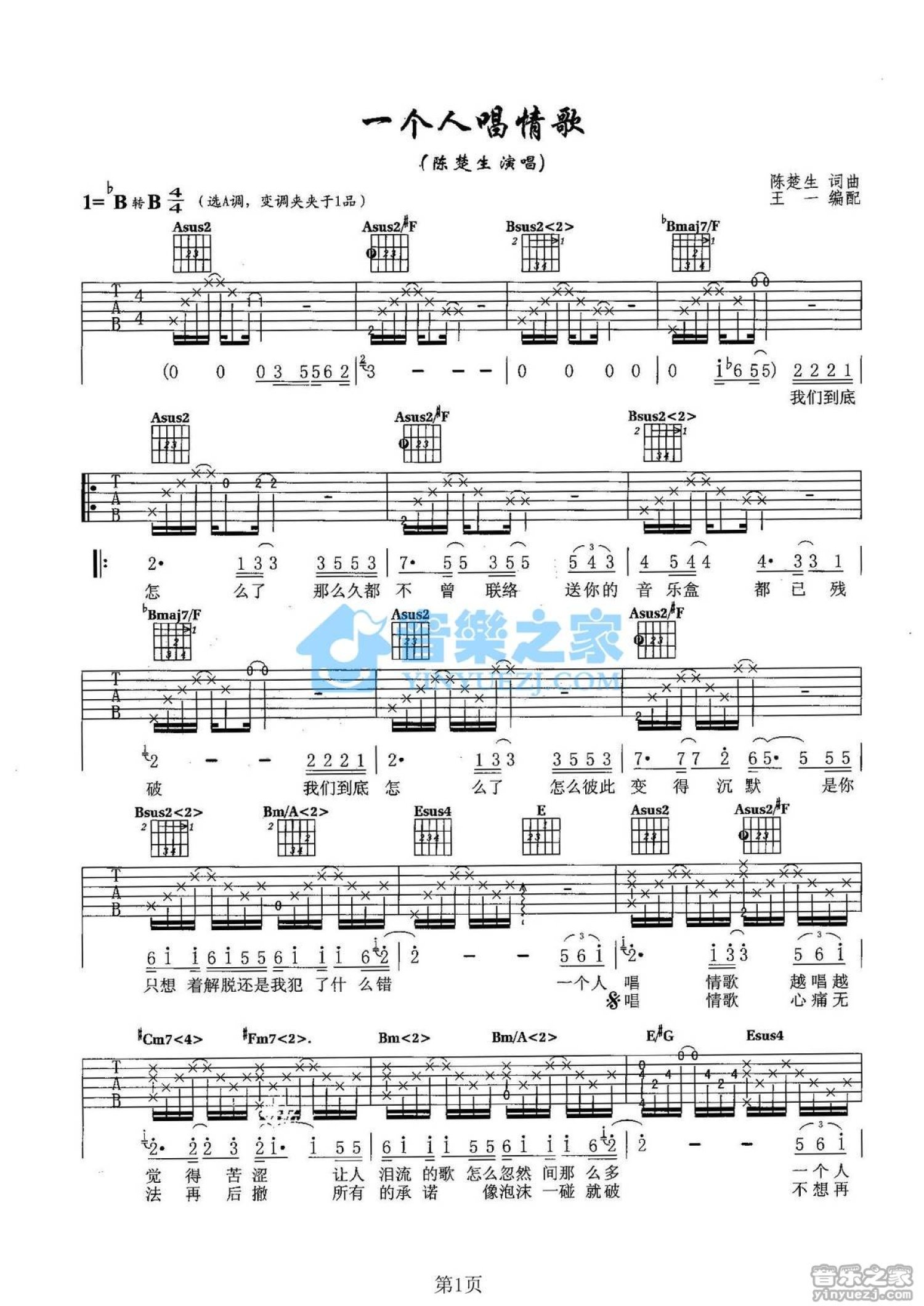 当前位置:琴谱网>吉他弹唱>一个人唱情歌