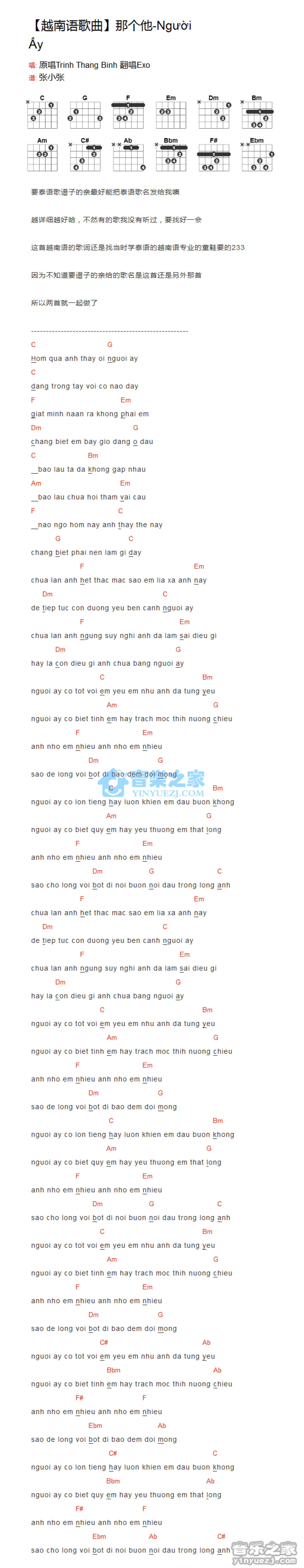 曲谱介绍: 《NguoiAy/那个他》吉他和弦弹唱谱