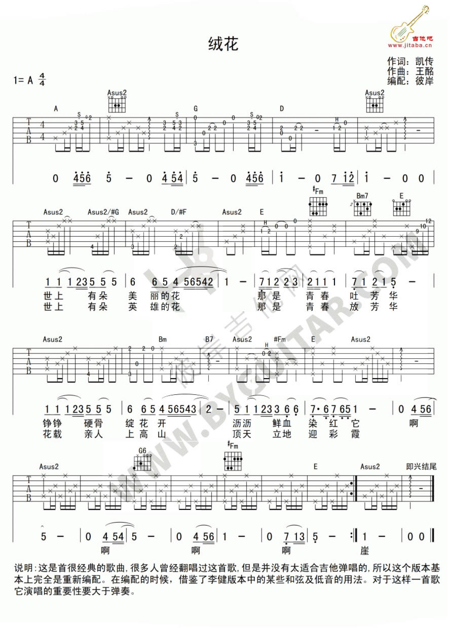 当前位置:琴谱网>吉他弹唱>绒花