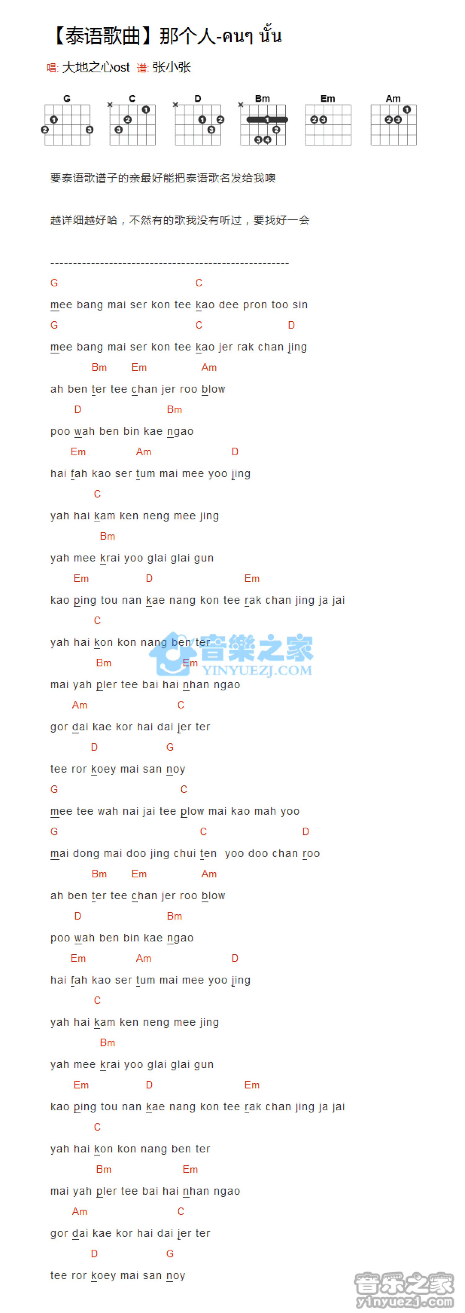 那个他吉他谱 - 泰语歌曲 - G调吉他弹唱谱 - 和弦谱