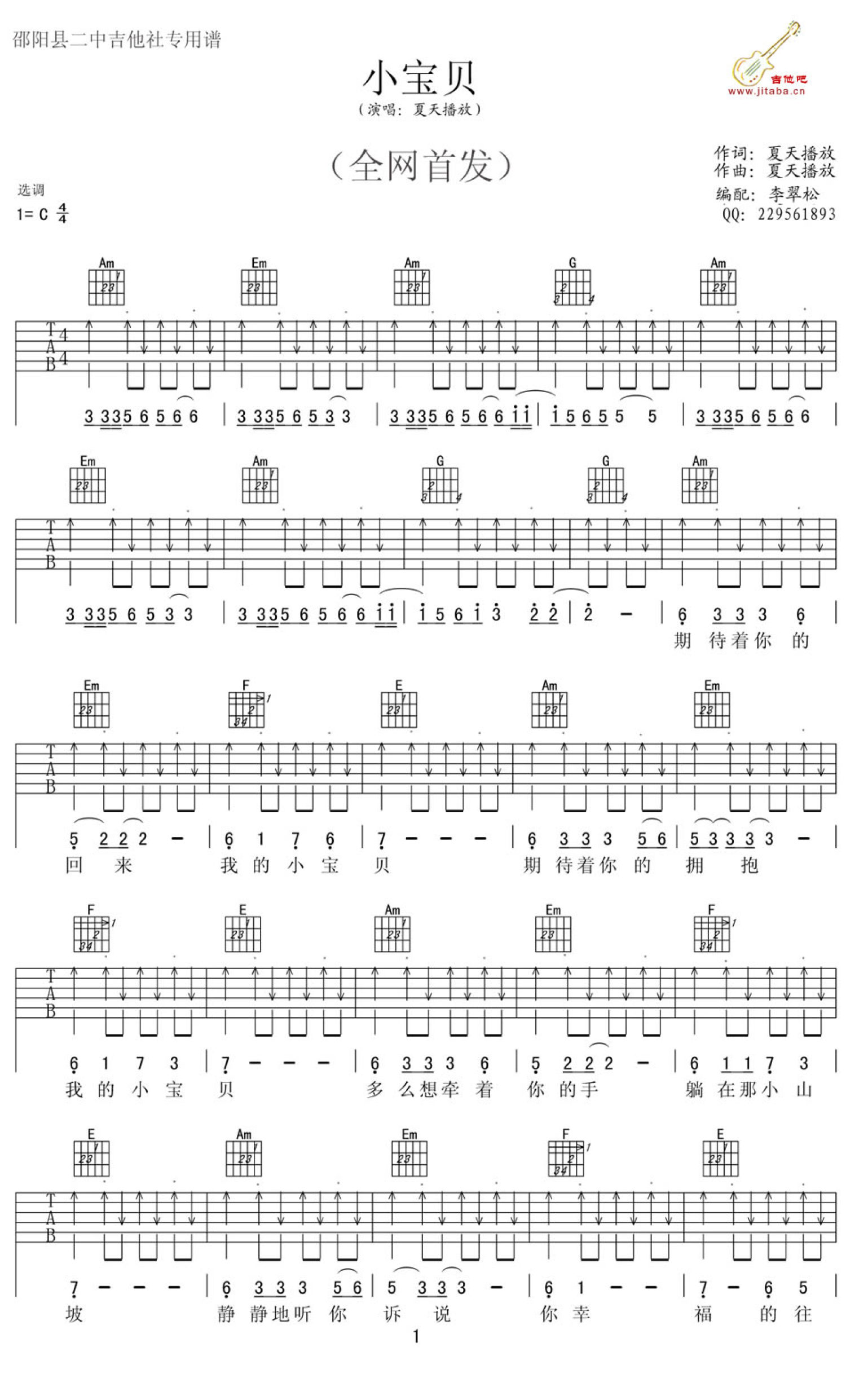 小宝贝吉他谱 - 夏天播放 - C调吉他弹唱谱