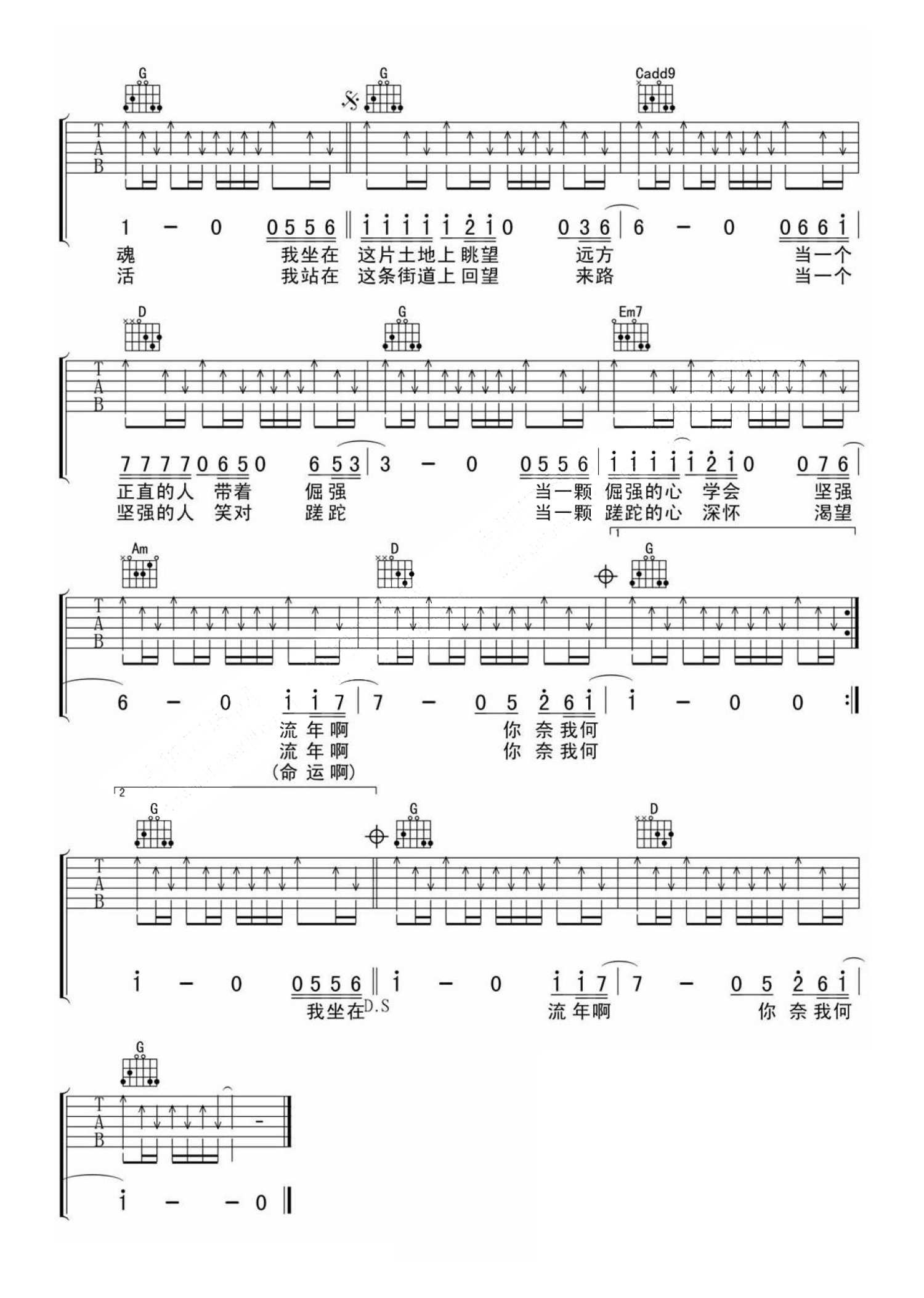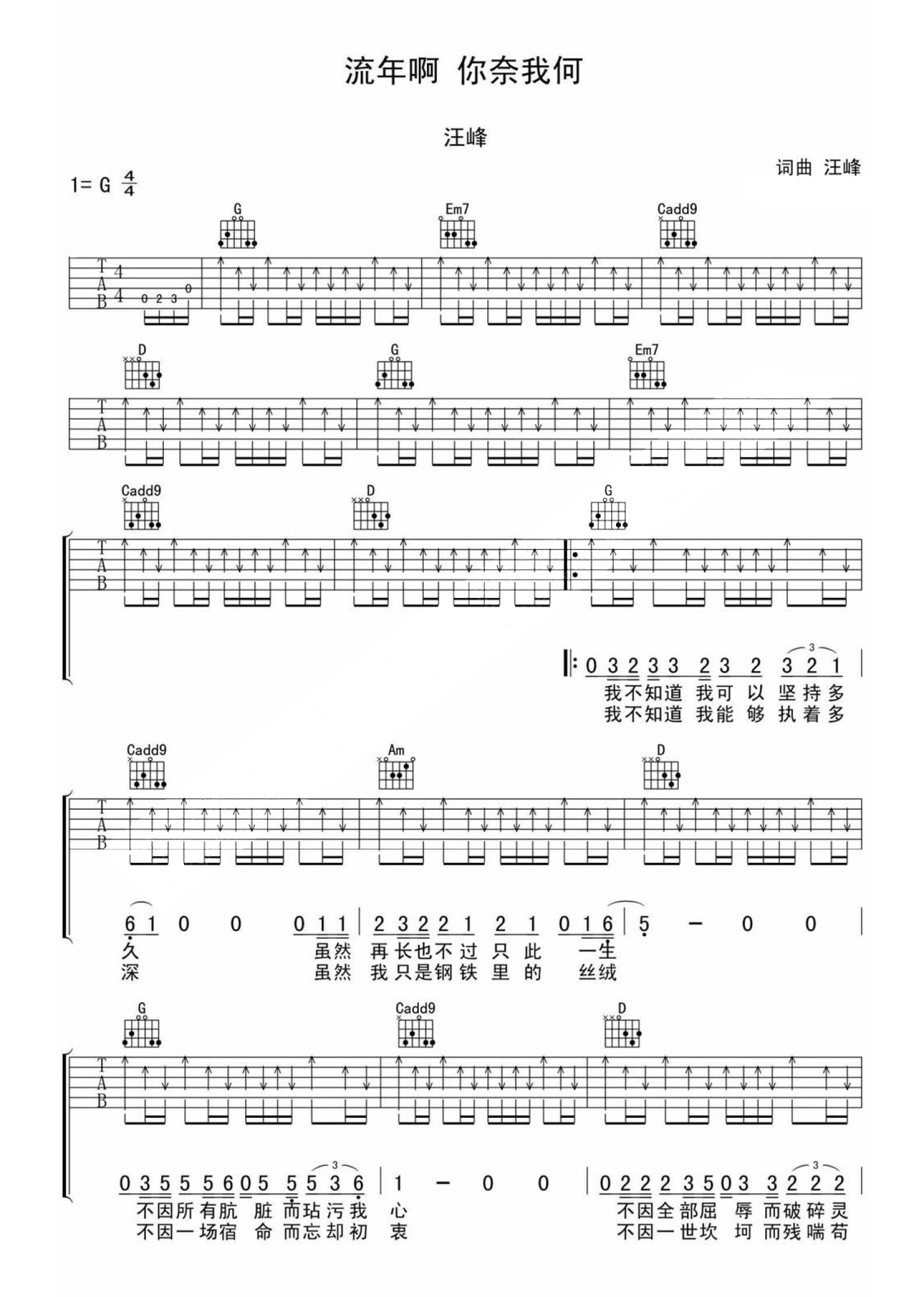 流年啊你奈我何吉他谱 - 汪峰 - G调吉他弹唱谱