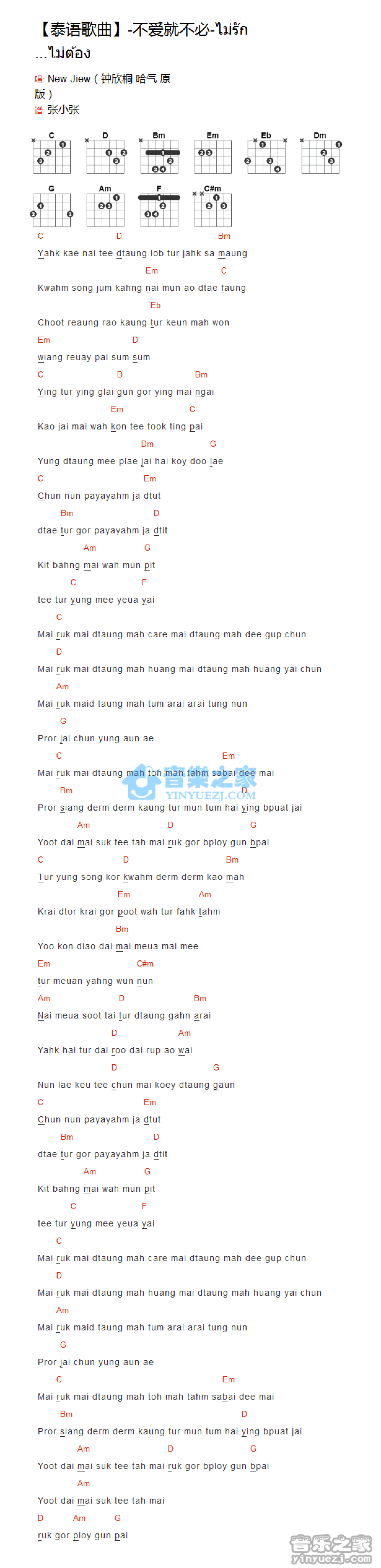 曲谱介绍: NewJiew《不爱就不必》吉他和弦弹唱谱