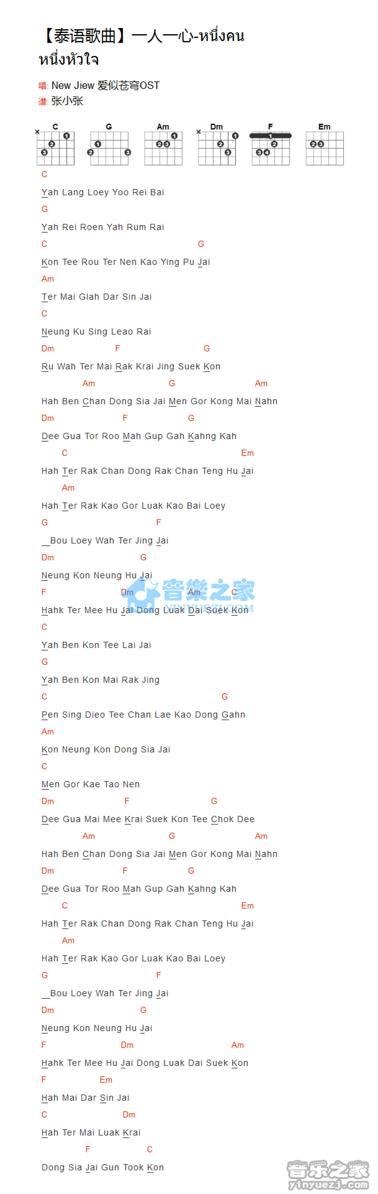 曲谱介绍: NewJiew《一人一心》吉他和弦弹唱谱泰剧《爱似苍穹》插曲
