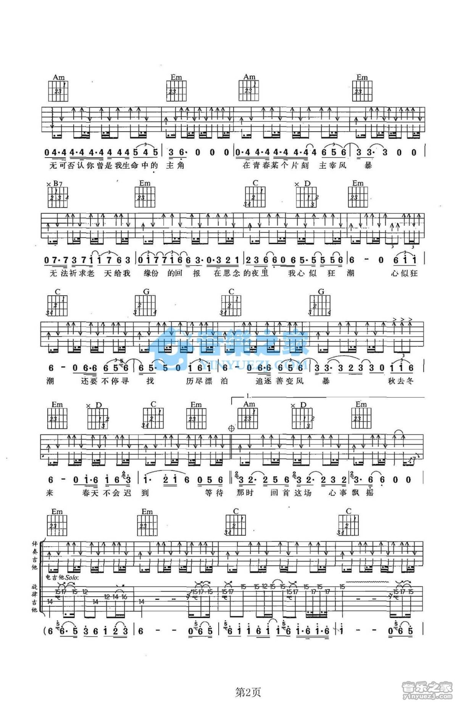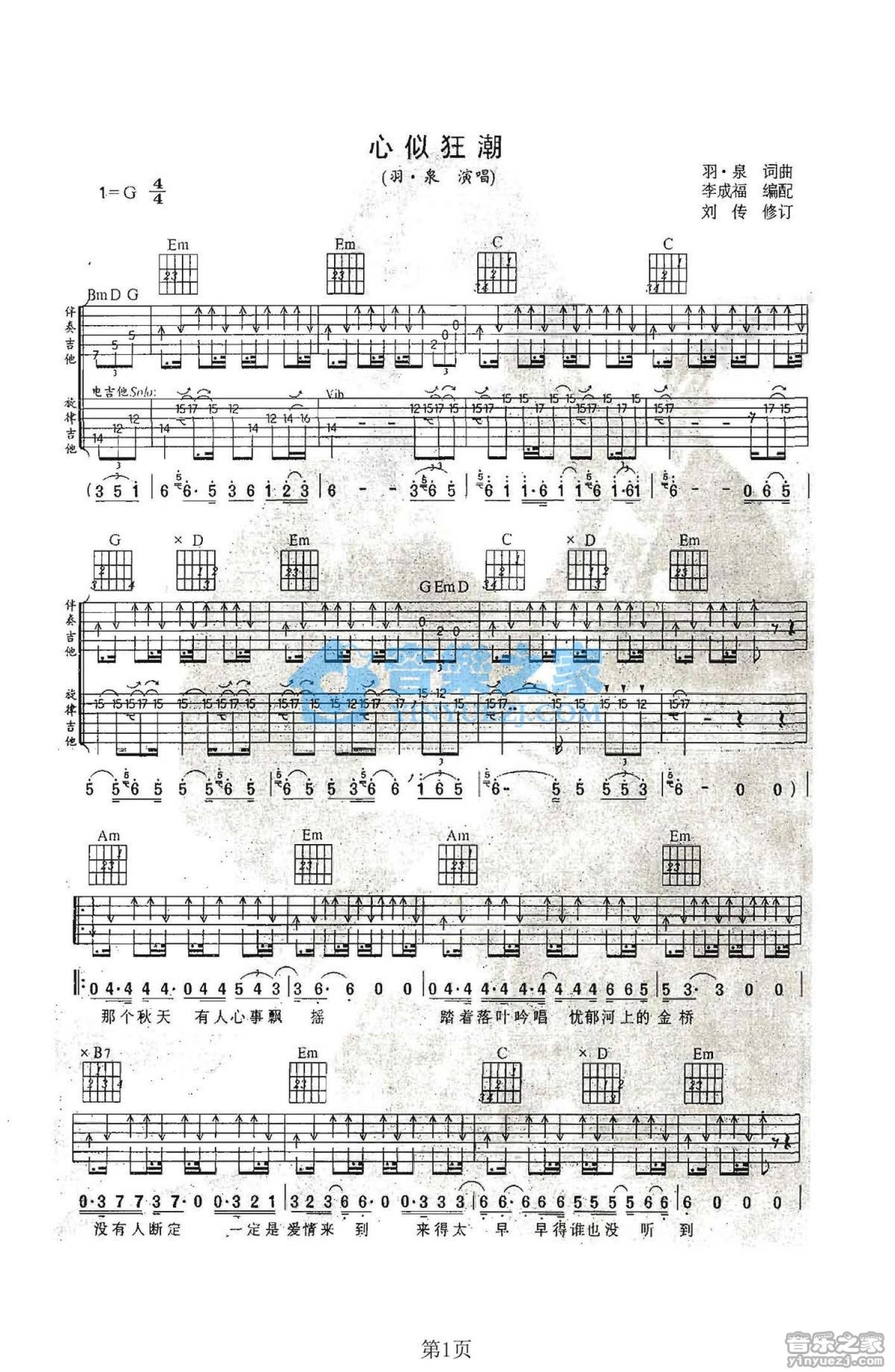 曲谱介绍: G调双吉他版 羽泉《心似狂潮》吉他弹唱六线谱
