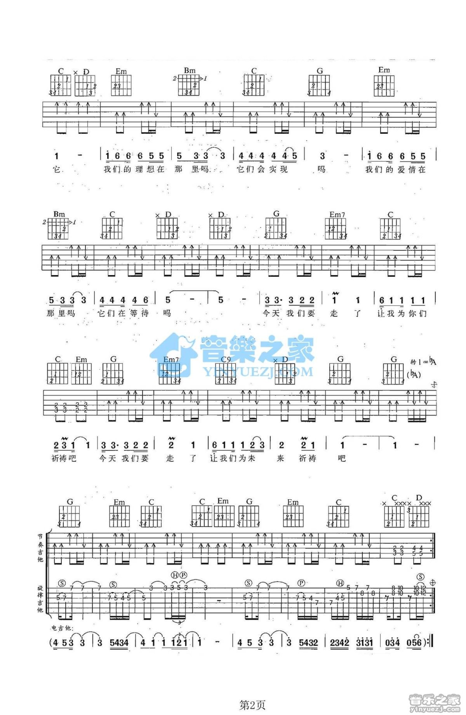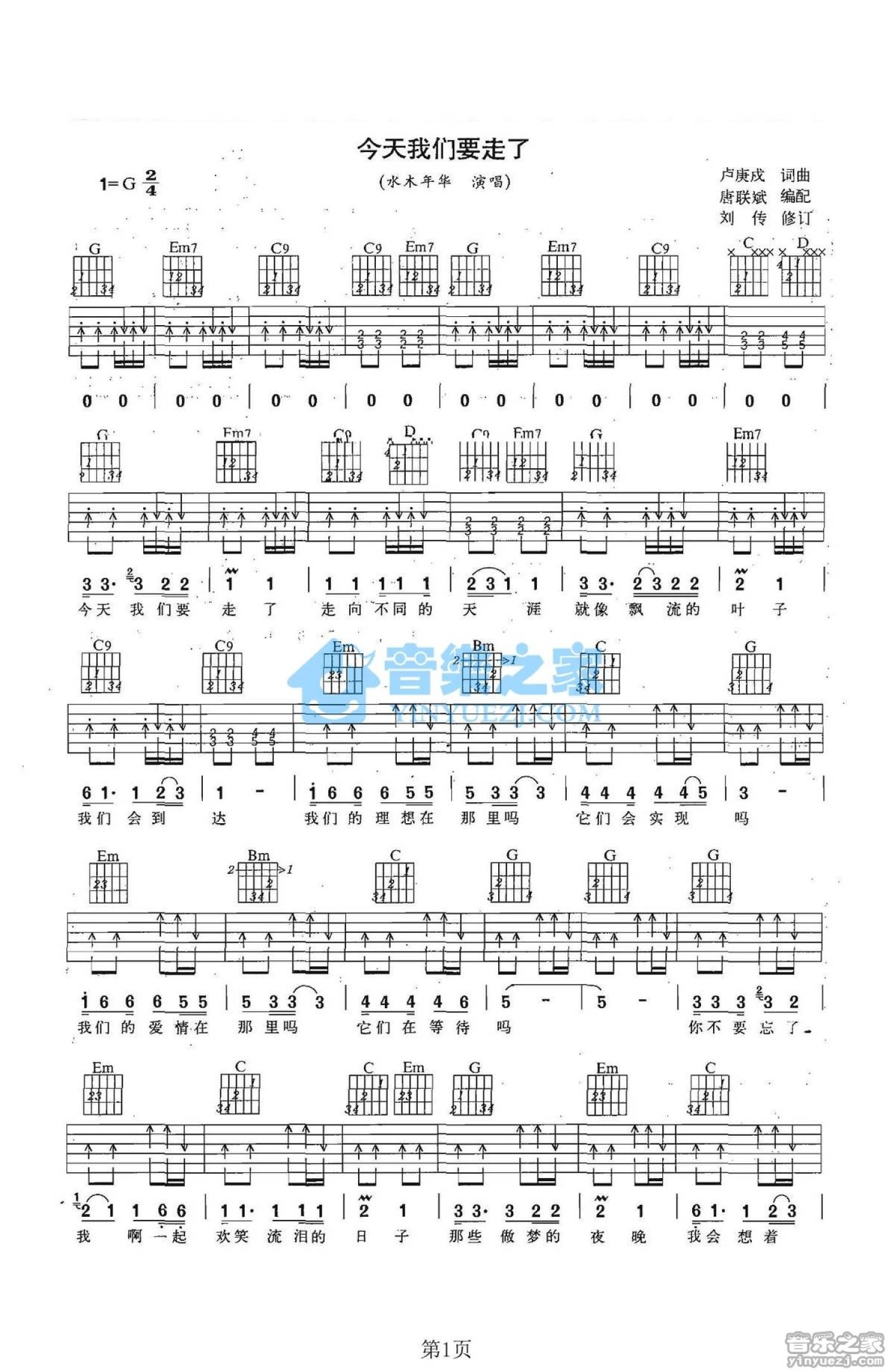 曲谱介绍: G调《今天我们要走了》吉他弹唱六线谱