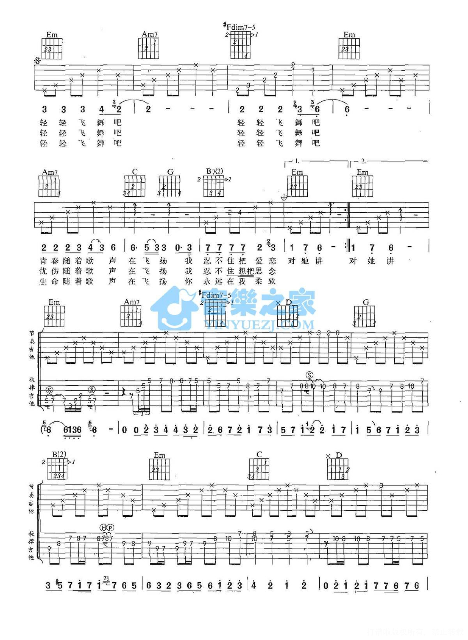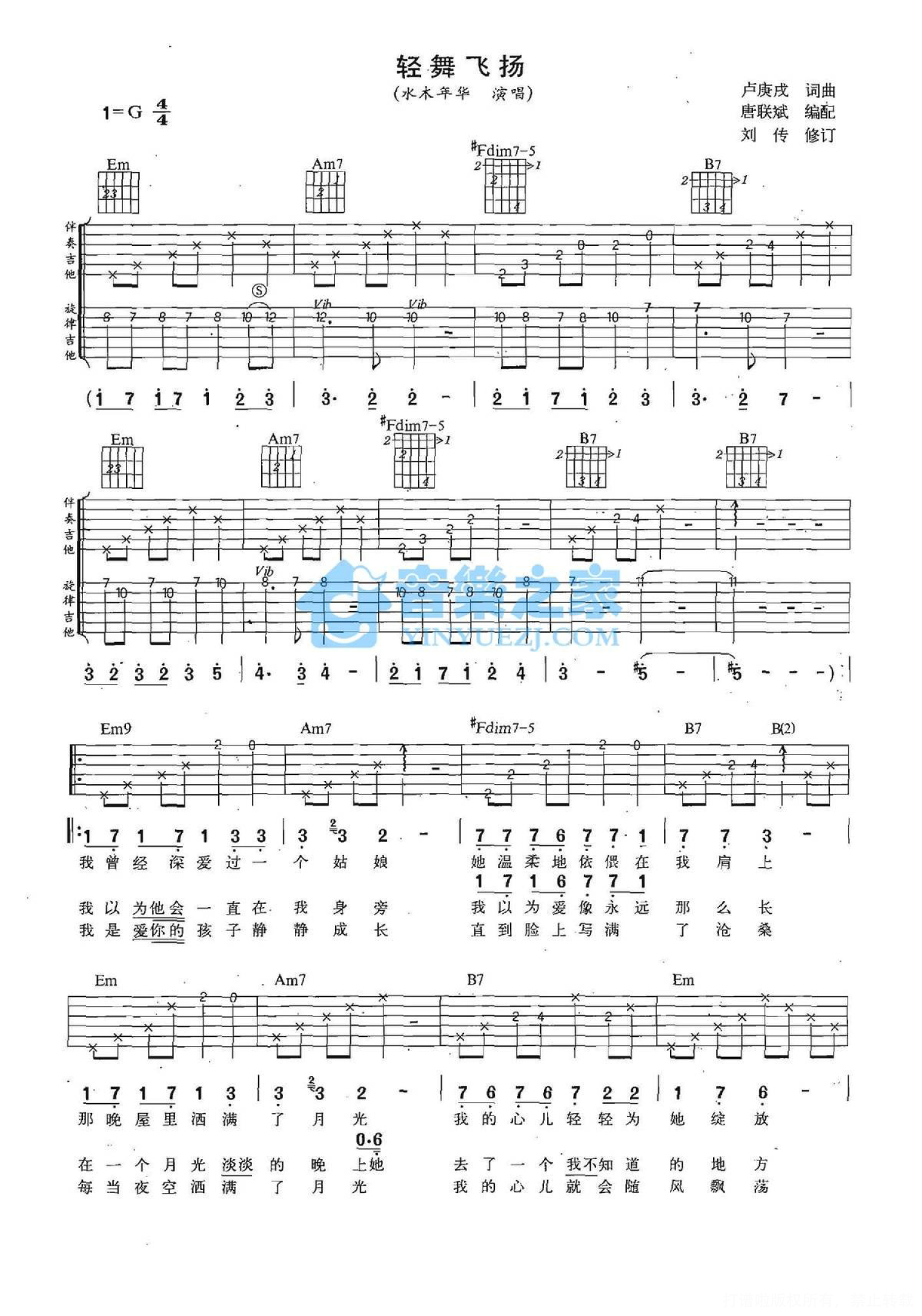 曲谱介绍: G调双吉他版水木年华《轻舞飞扬》吉他弹唱六线谱