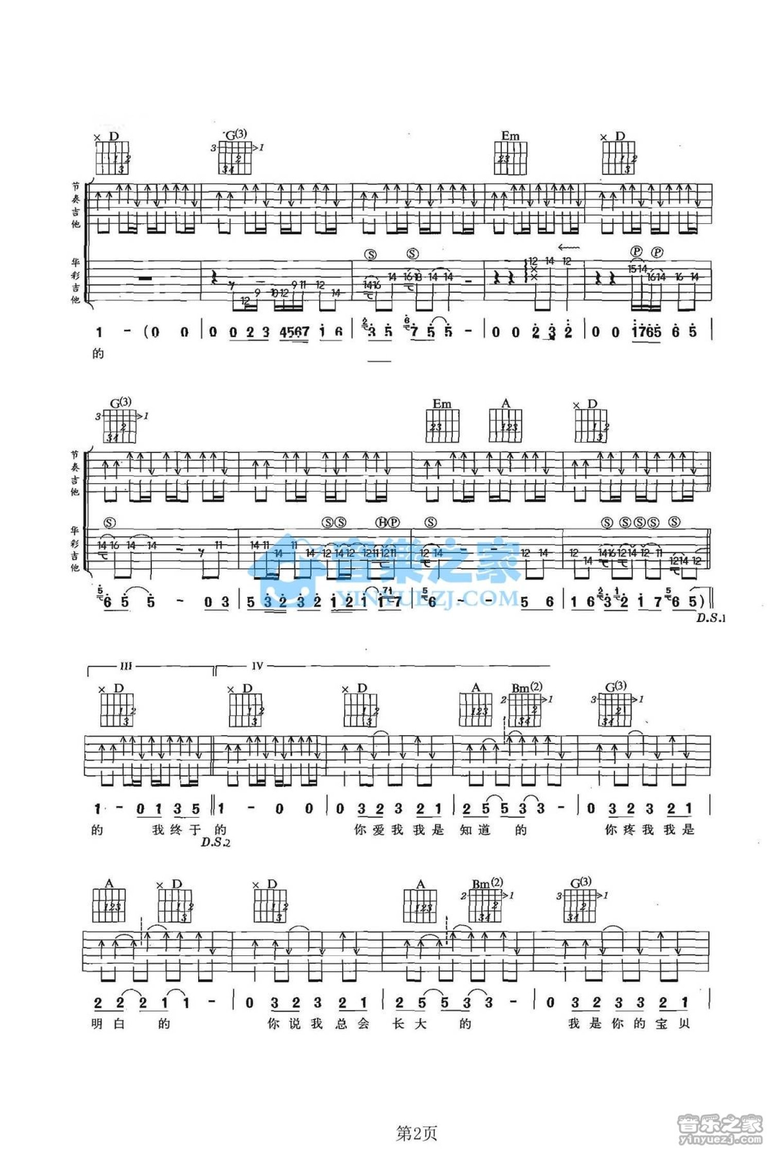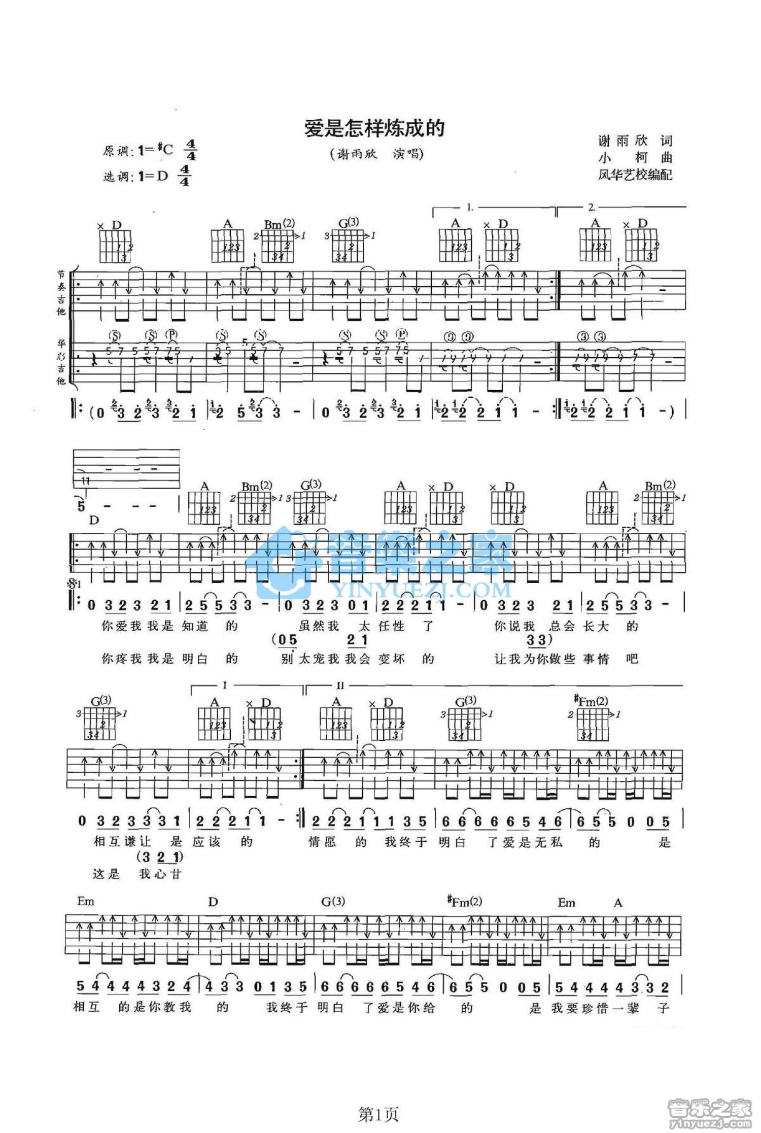 曲谱介绍: D调双吉他版谢雨欣《爱是怎样炼成的》吉他弹唱六线谱