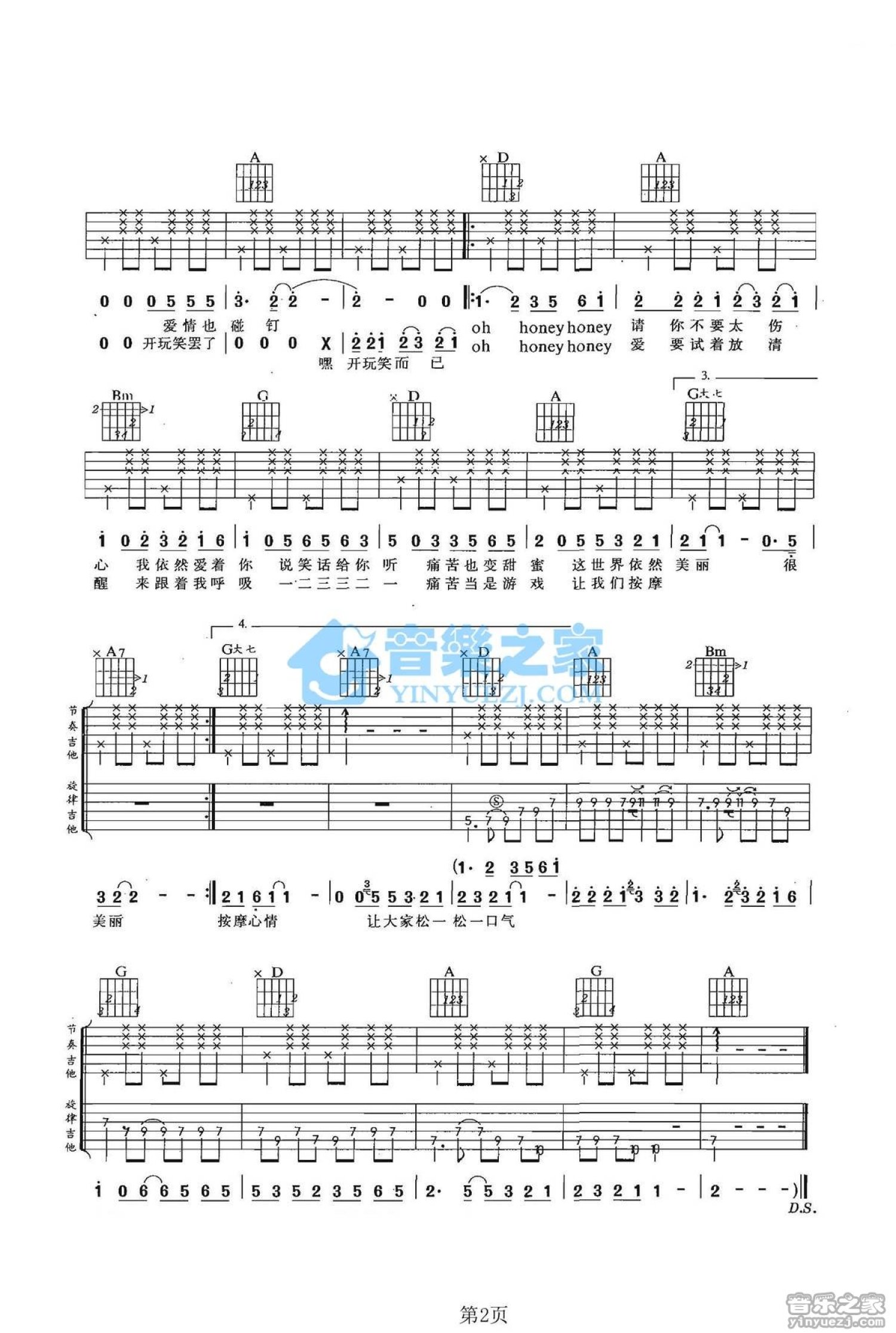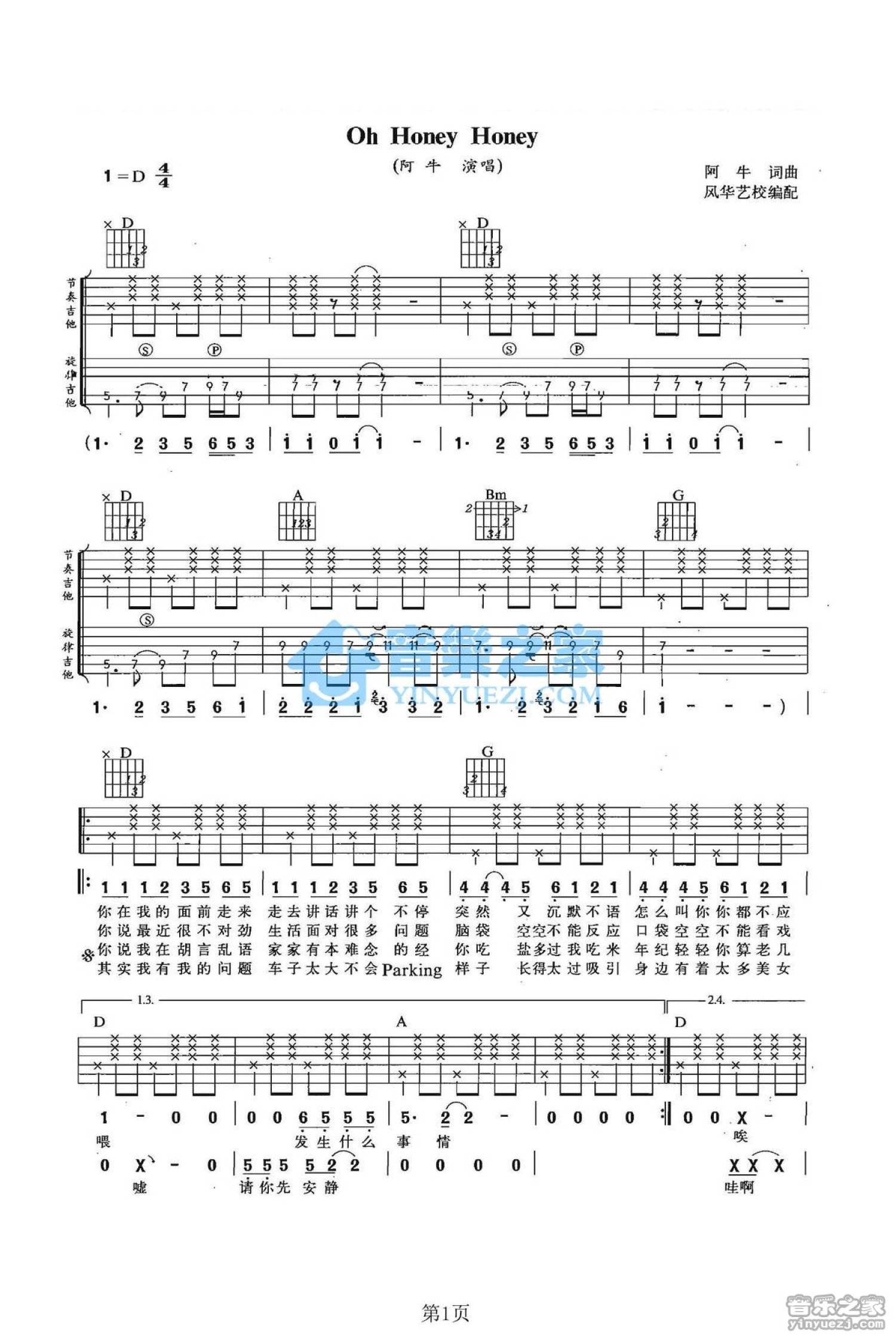 曲谱介绍: C调双吉他版 阿牛《Oh Honey Honey》吉他弹唱六线谱