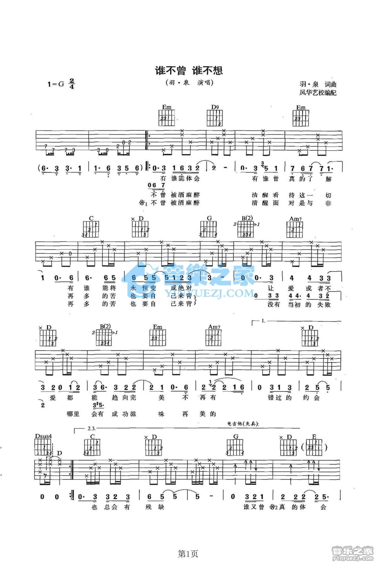 谁不曾谁不想吉他谱 - 羽泉 - G调吉他弹唱谱 - 双吉他版