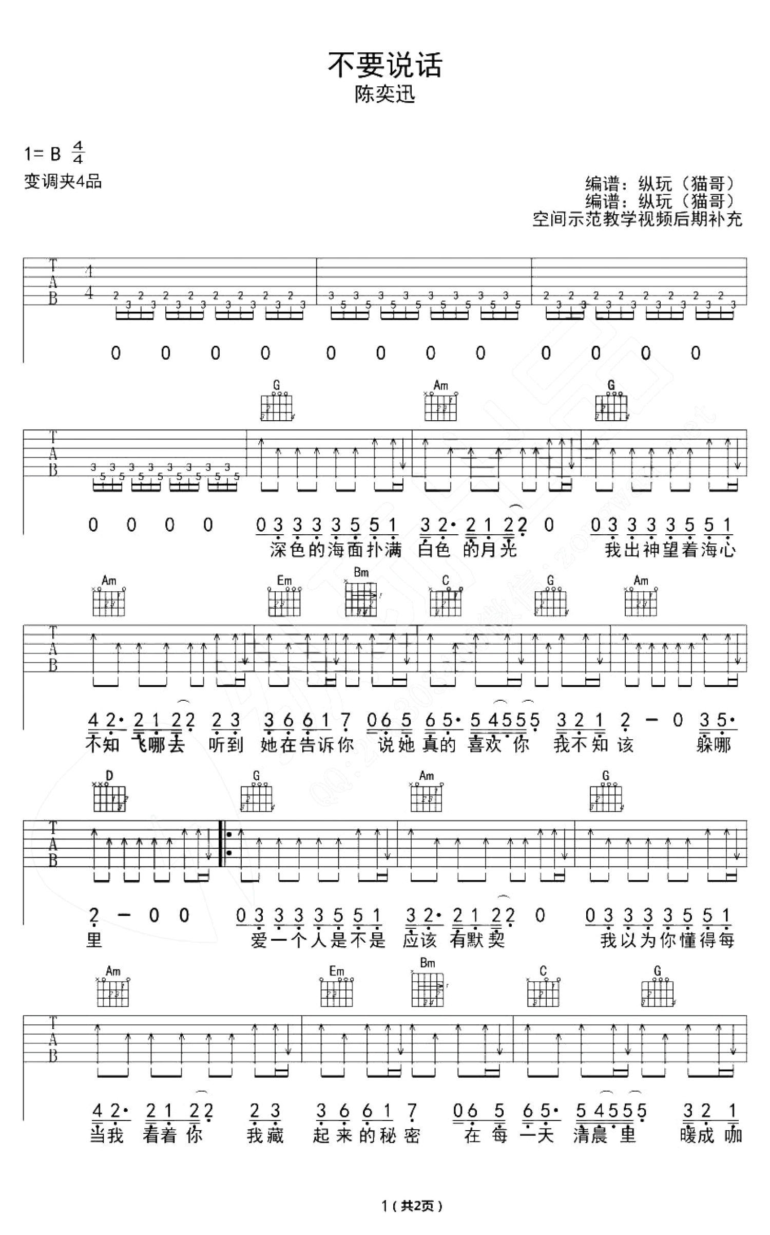 当前位置:琴谱网>吉他弹唱>不要说话