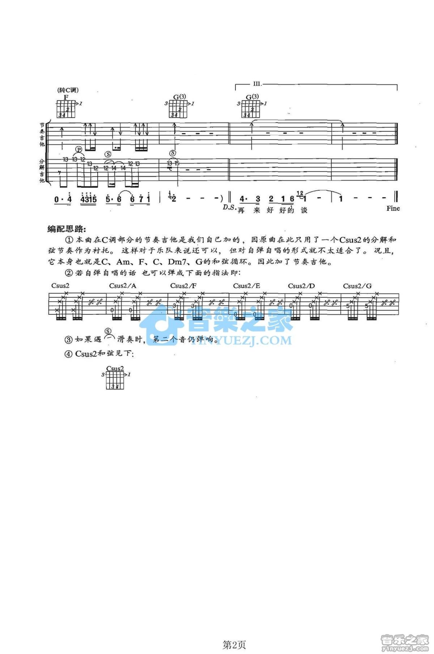 曲谱介绍: C转D调双吉他版零点乐队《等你把梦做完》吉他弹唱六线谱