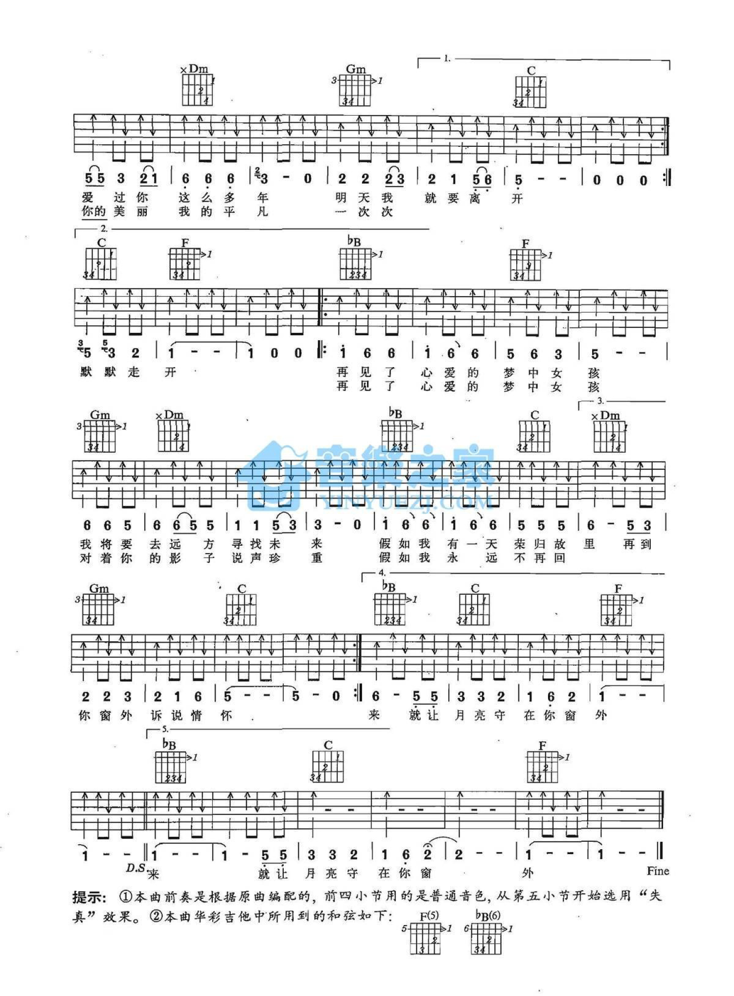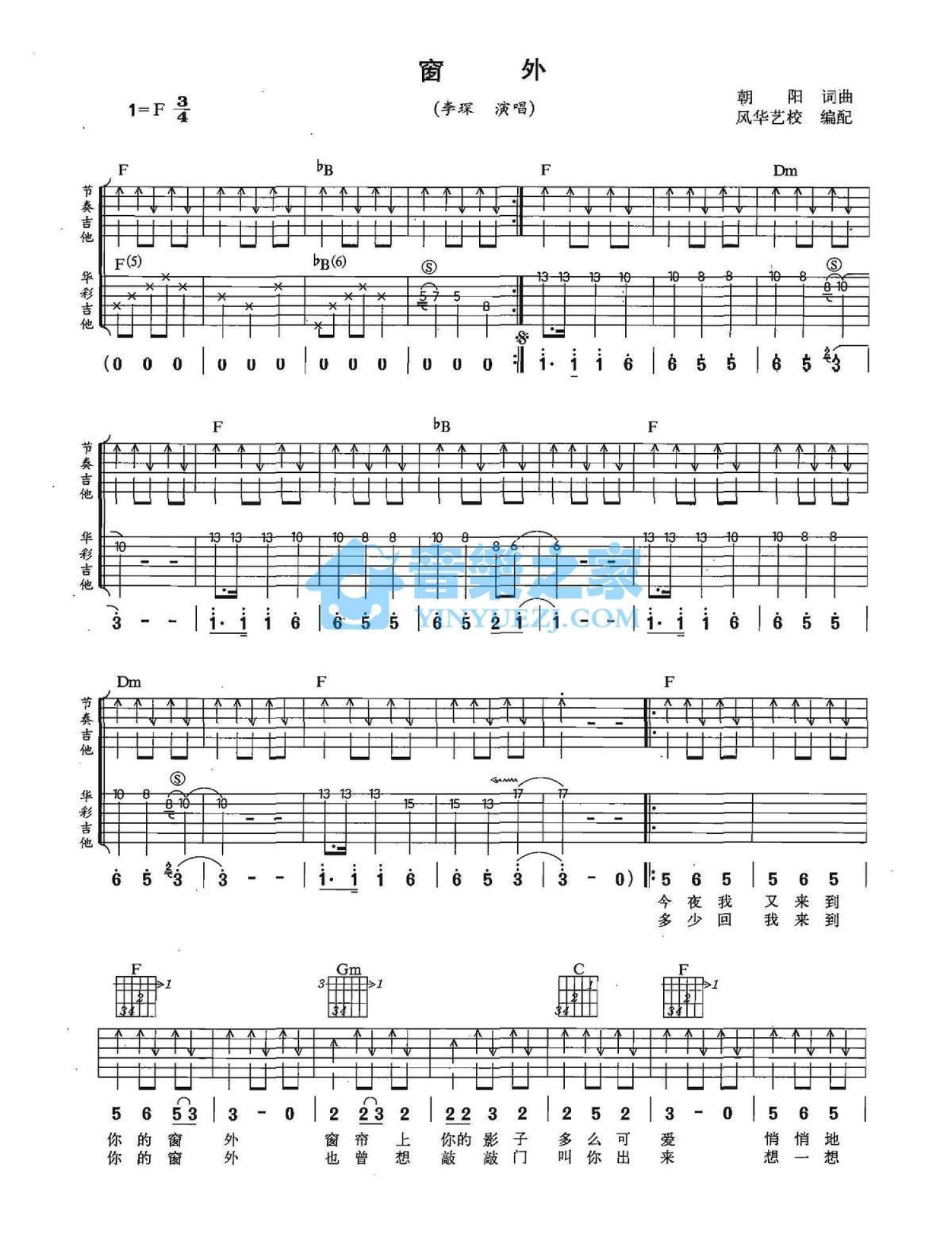 曲谱介绍: F调《窗外》吉他弹唱六线谱