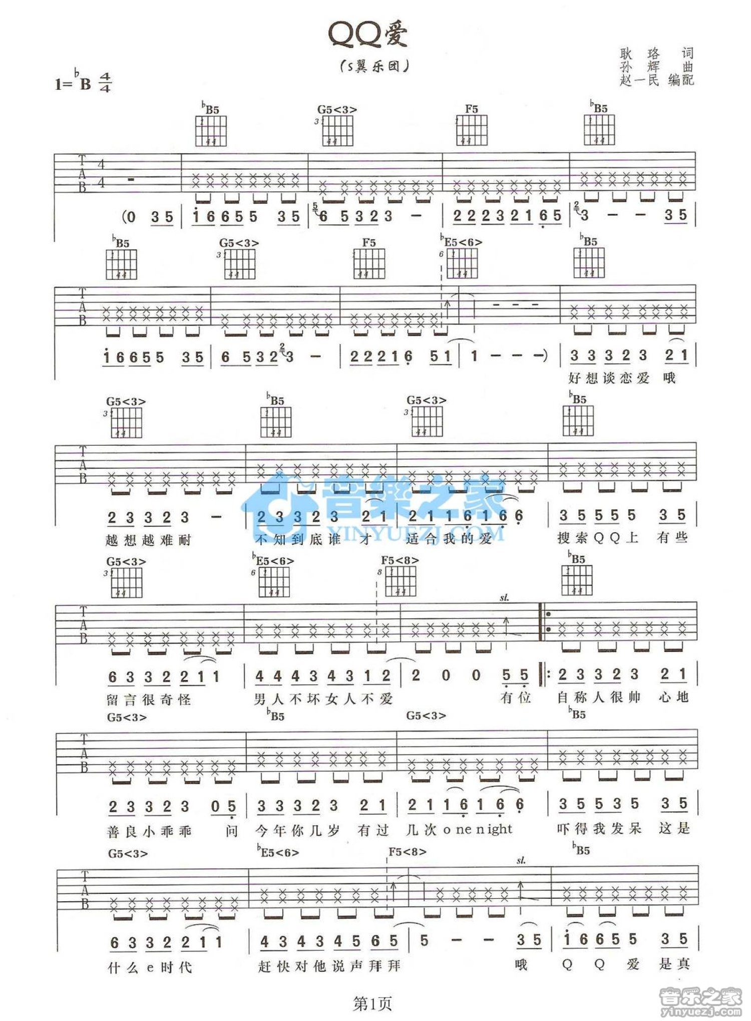 QQ爱吉他谱 - S翼乐团 - 吉他弹唱谱