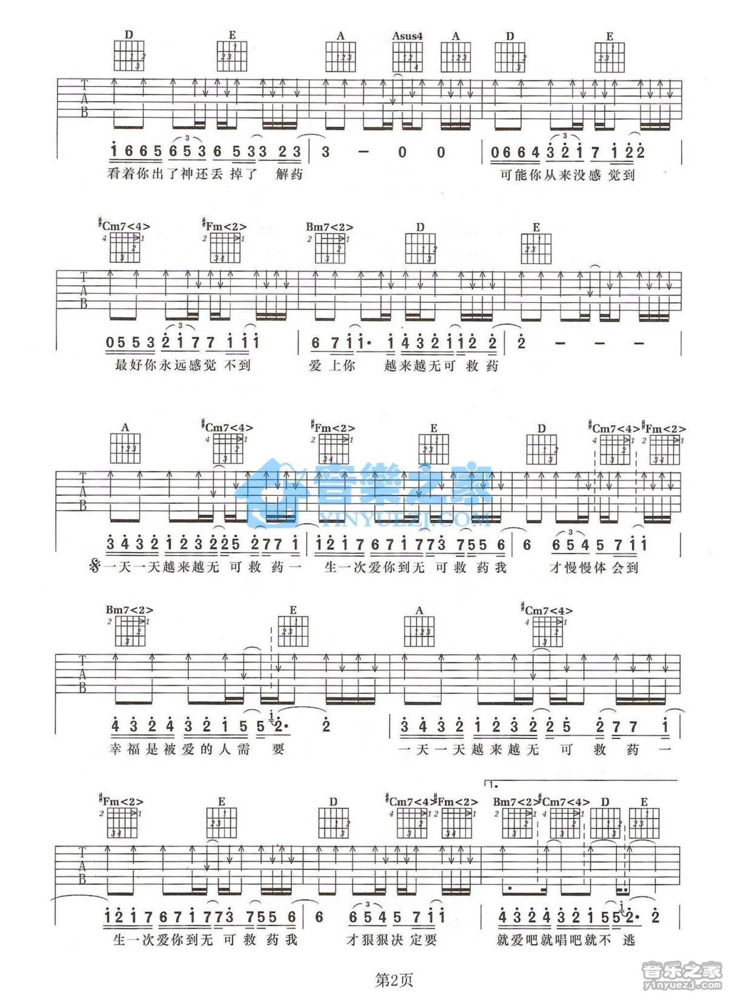 当前位置:琴谱网>吉他弹唱>无可救药