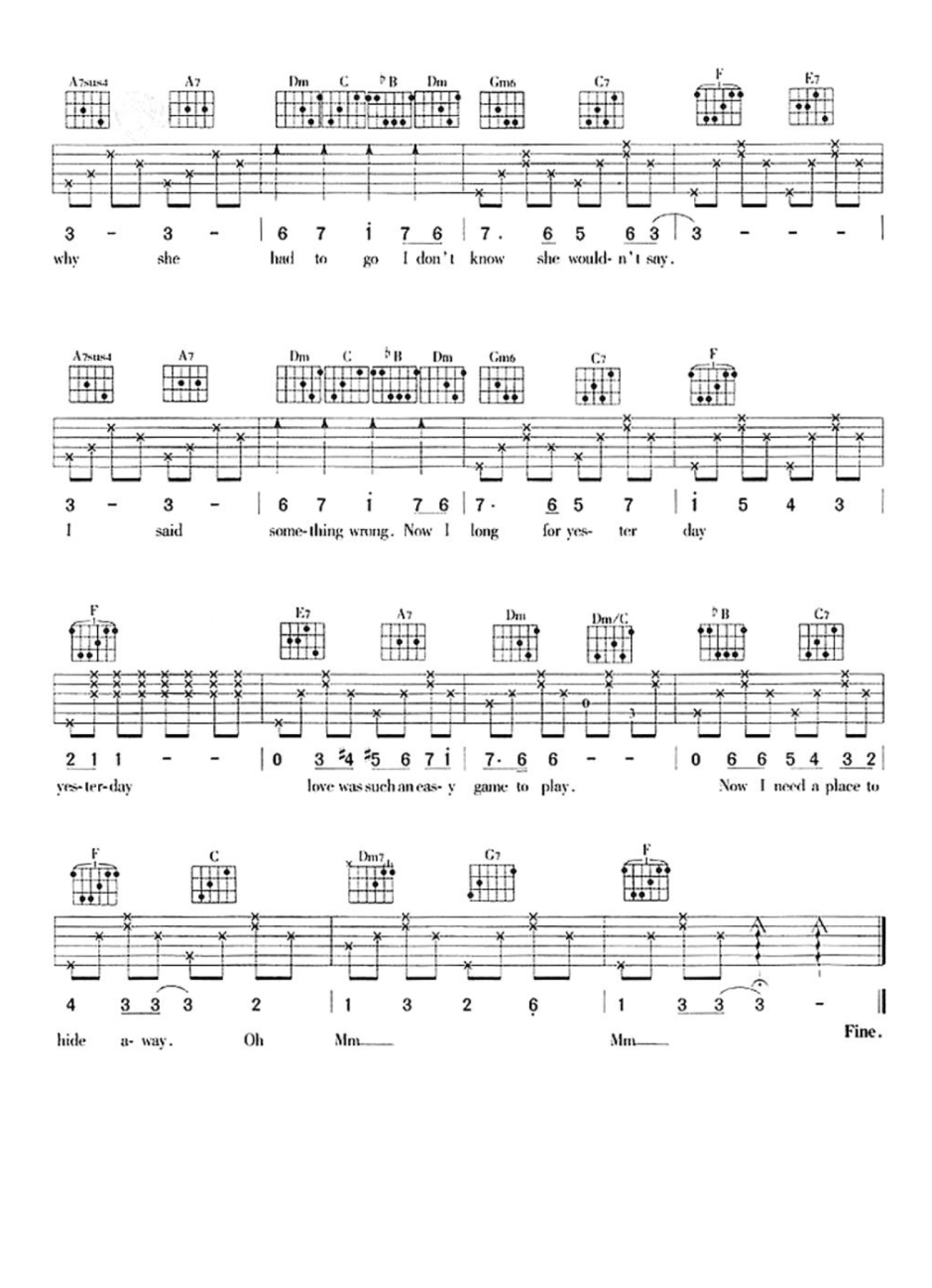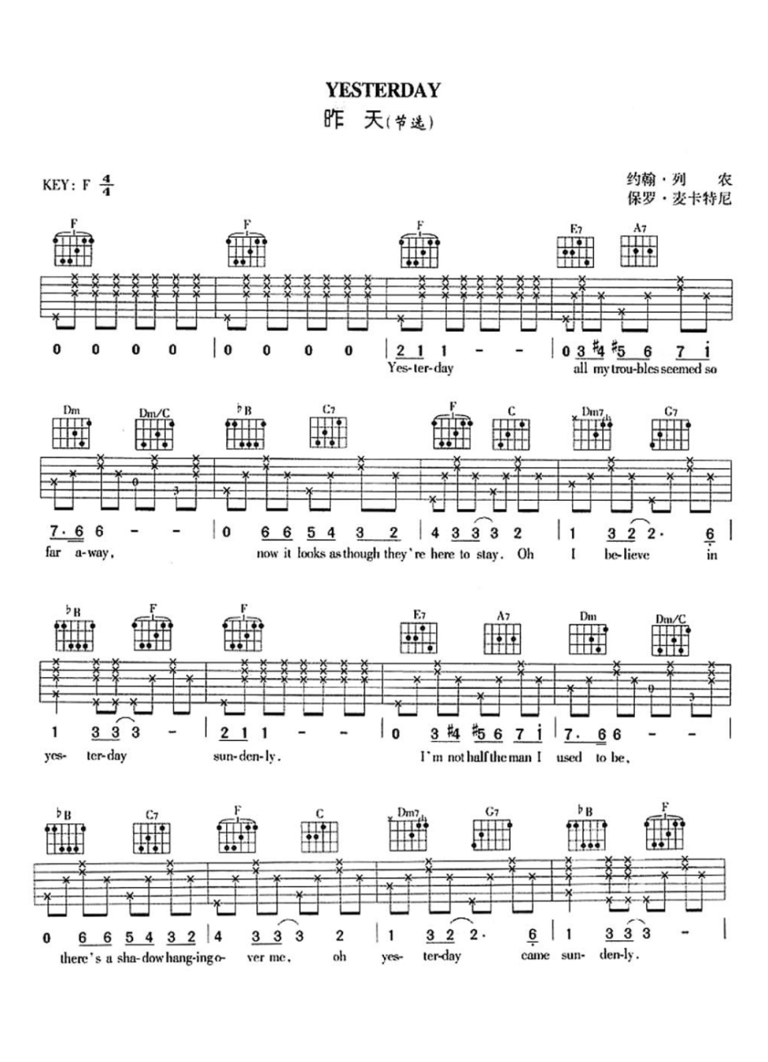 Yesterday吉他谱 - F调吉他弹唱谱