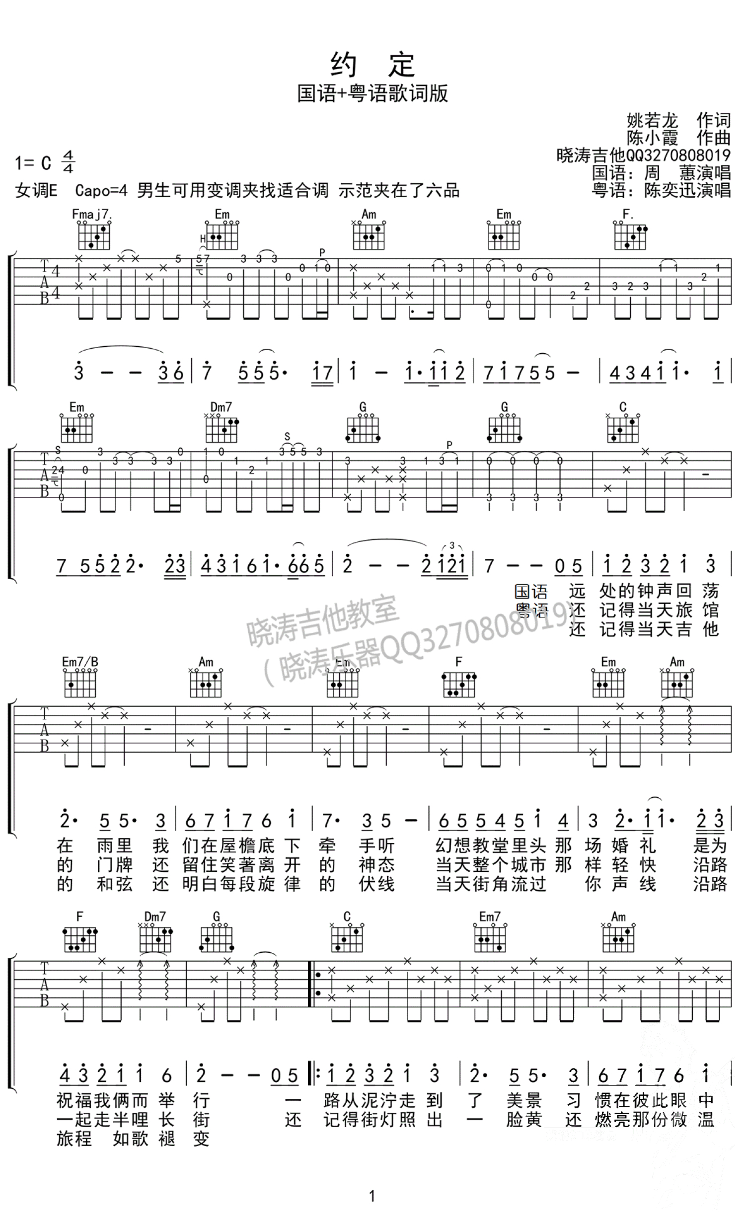 约定吉他谱 - 周蕙陈奕迅 - 吉他弹唱谱 - 国语粤语版