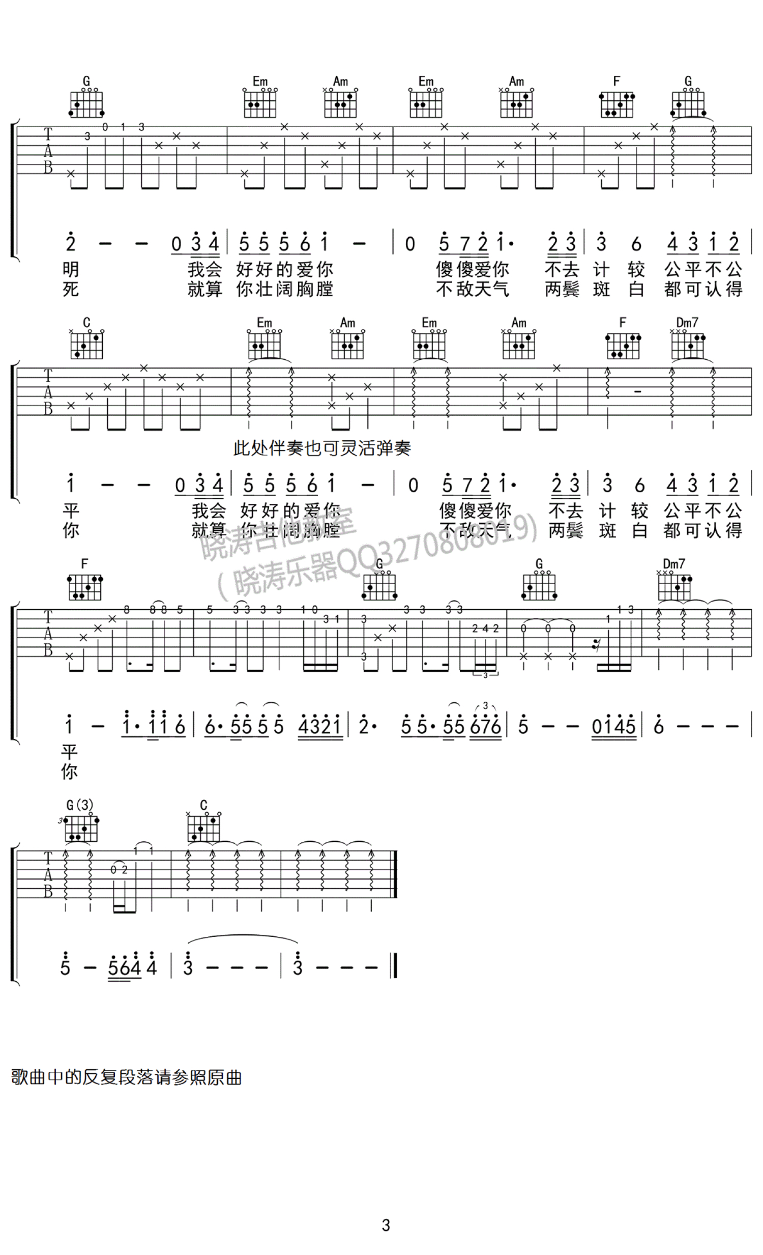 吉他弹唱原调来源:晓涛吉他1732 浏览2018-03-19 13:34发布图谱共3页
