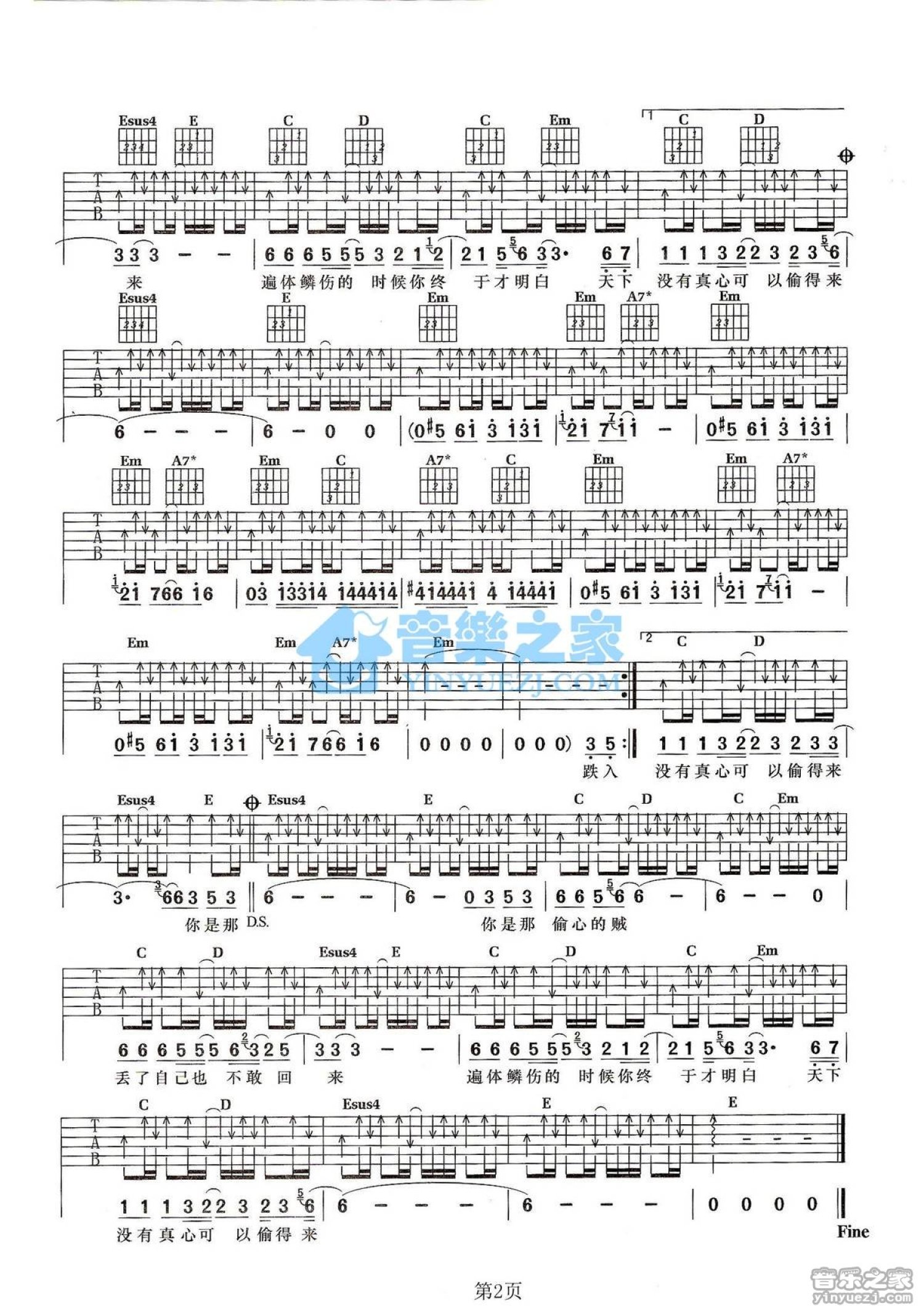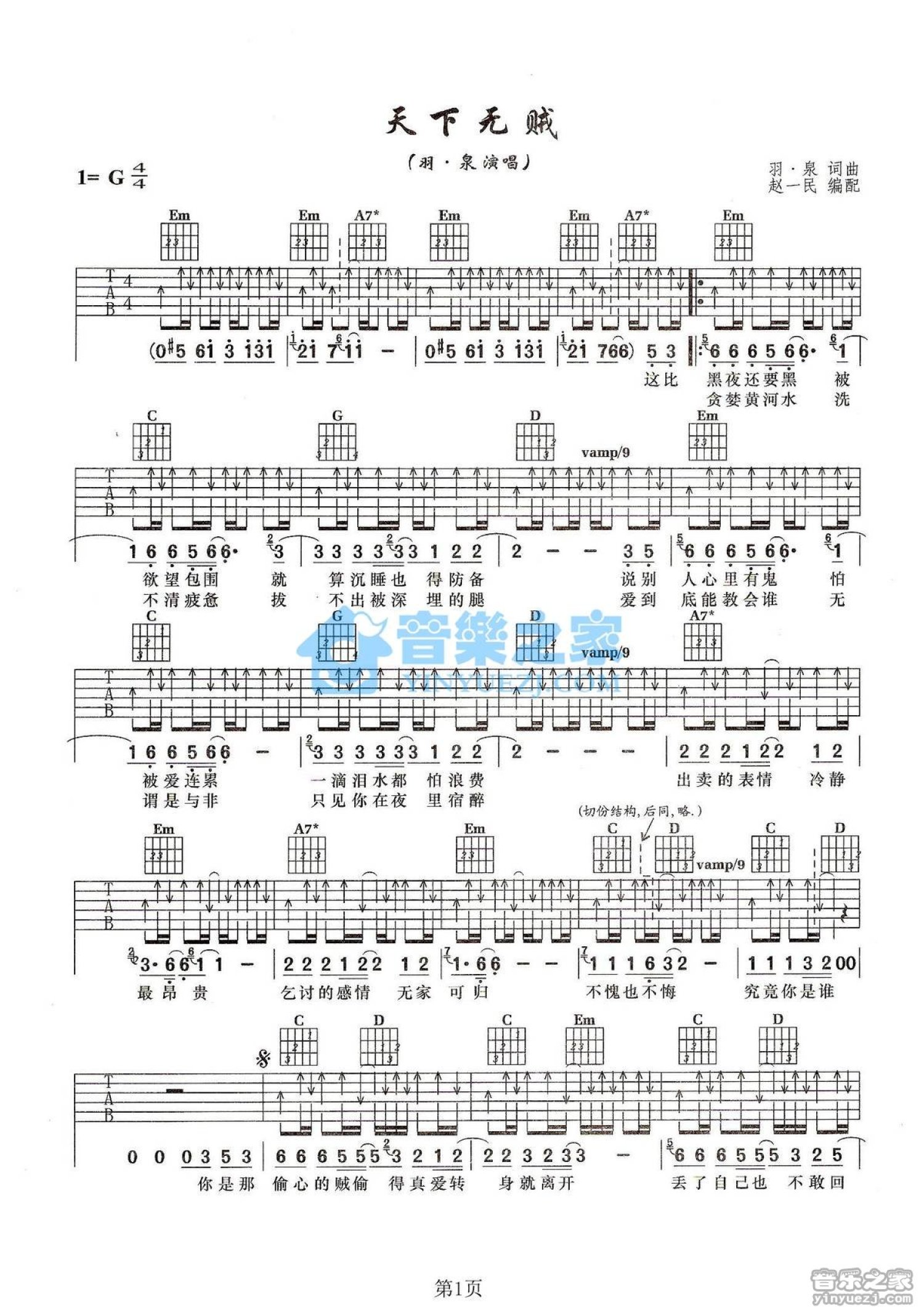 曲谱介绍: G调版羽泉《天下无贼》吉他弹唱六线谱