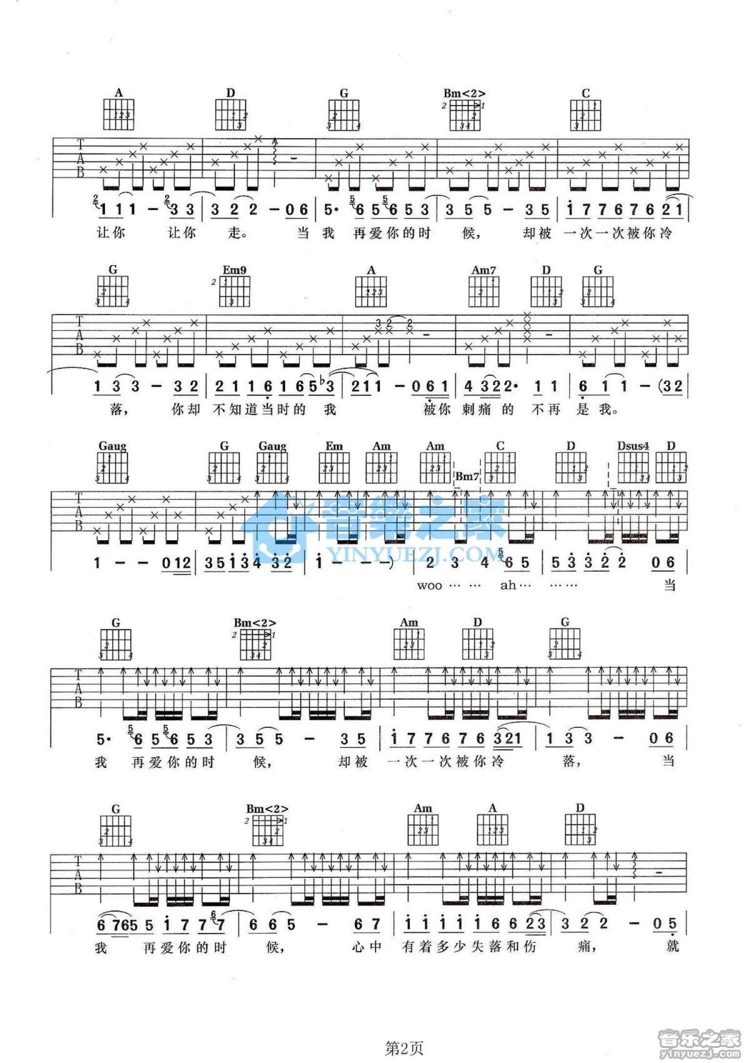 曲谱介绍: G调版小鸣《当我再爱你的时候》吉他弹唱六线谱