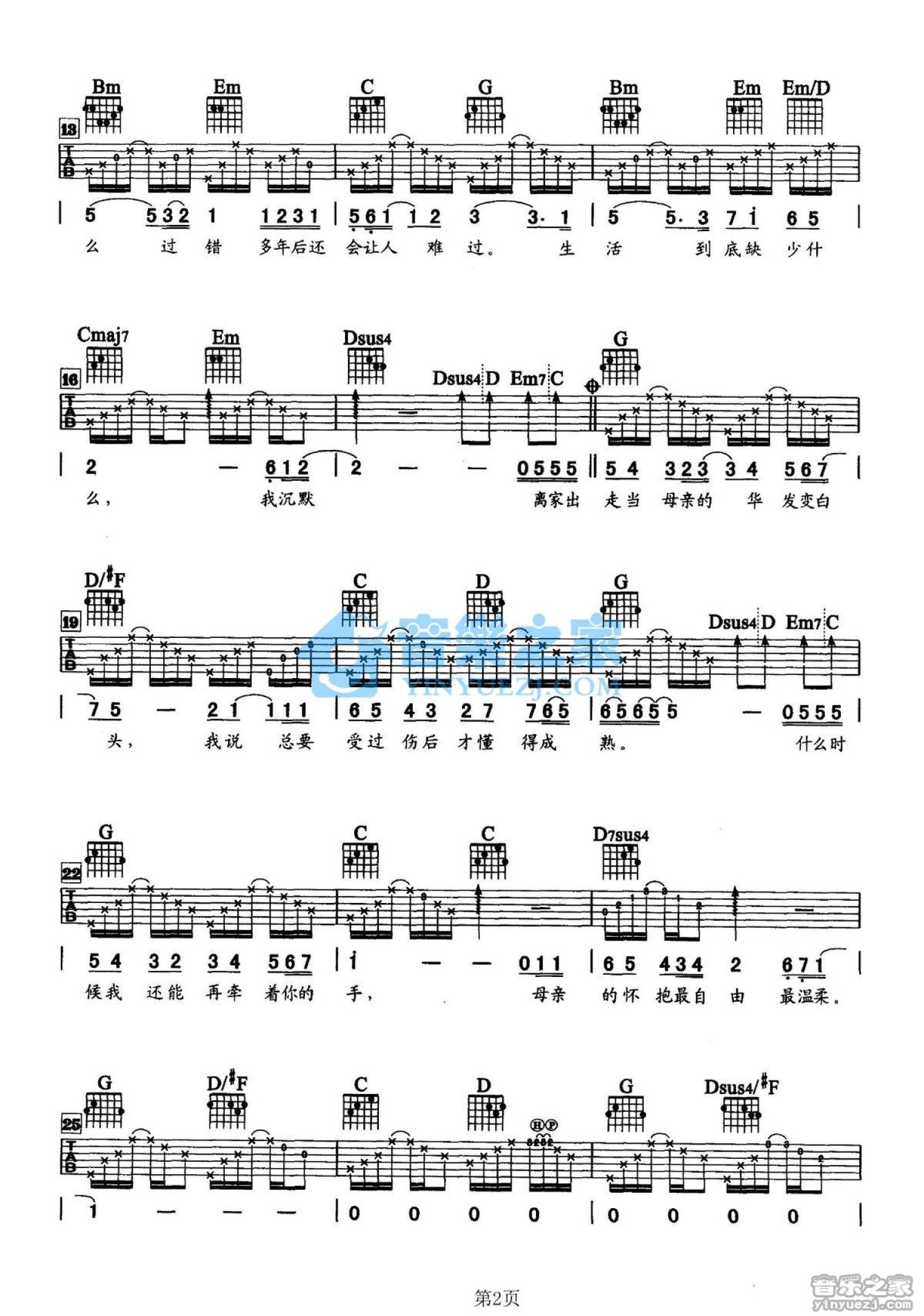 曲谱介绍: G调版《一壶乡愁》吉他弹唱六线谱