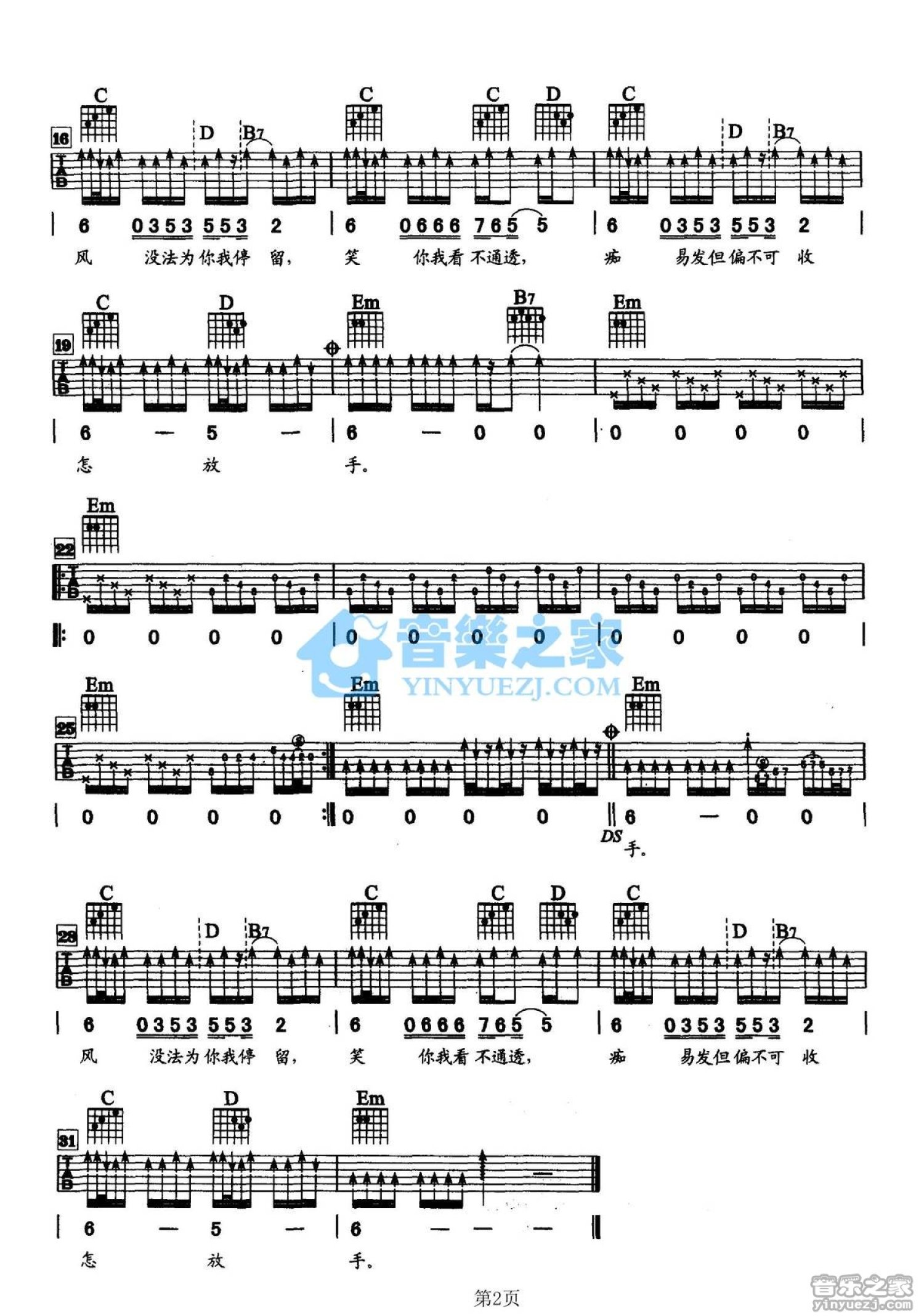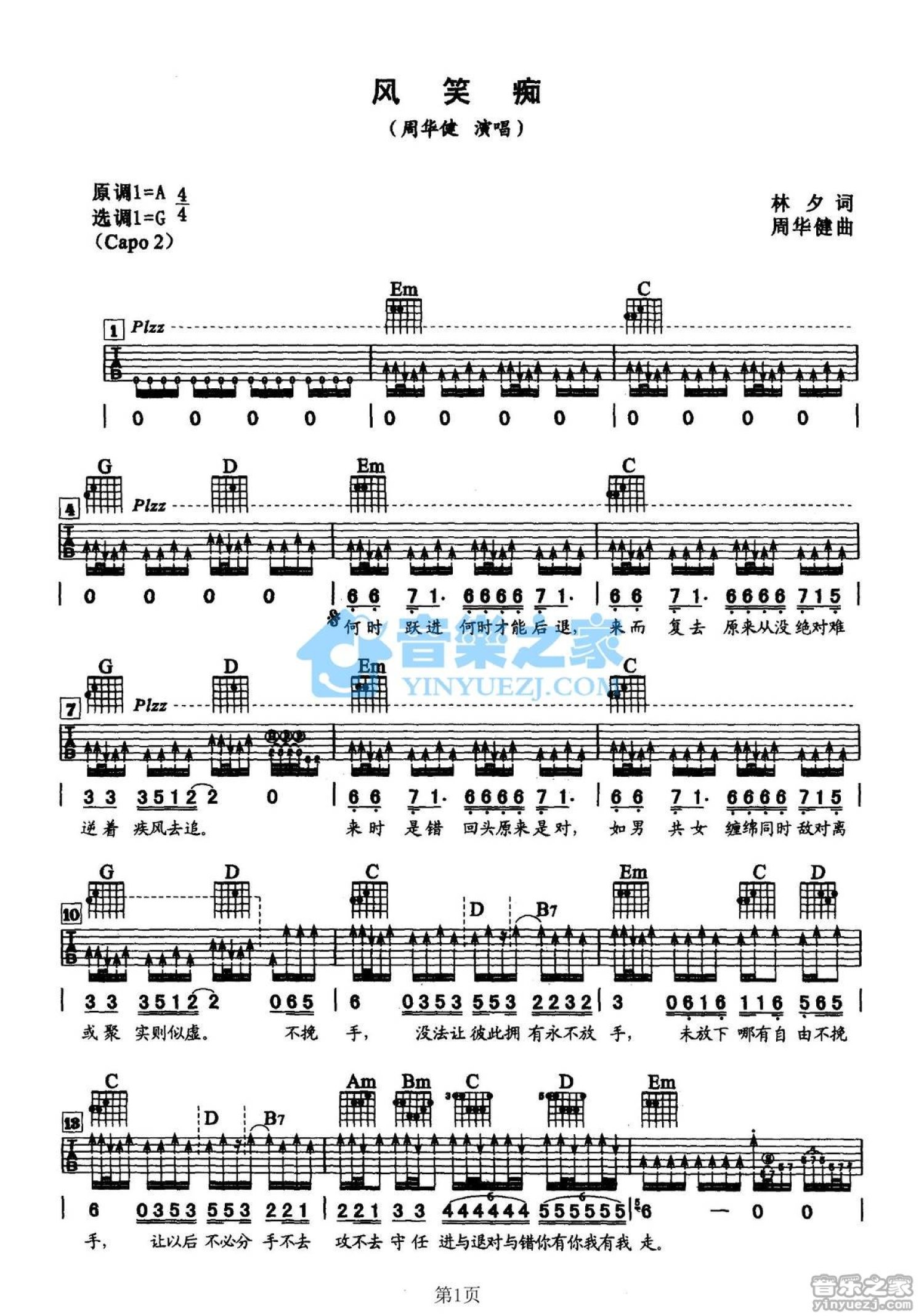 曲谱介绍: G调版周华健《风笑痴》吉他弹唱六线谱