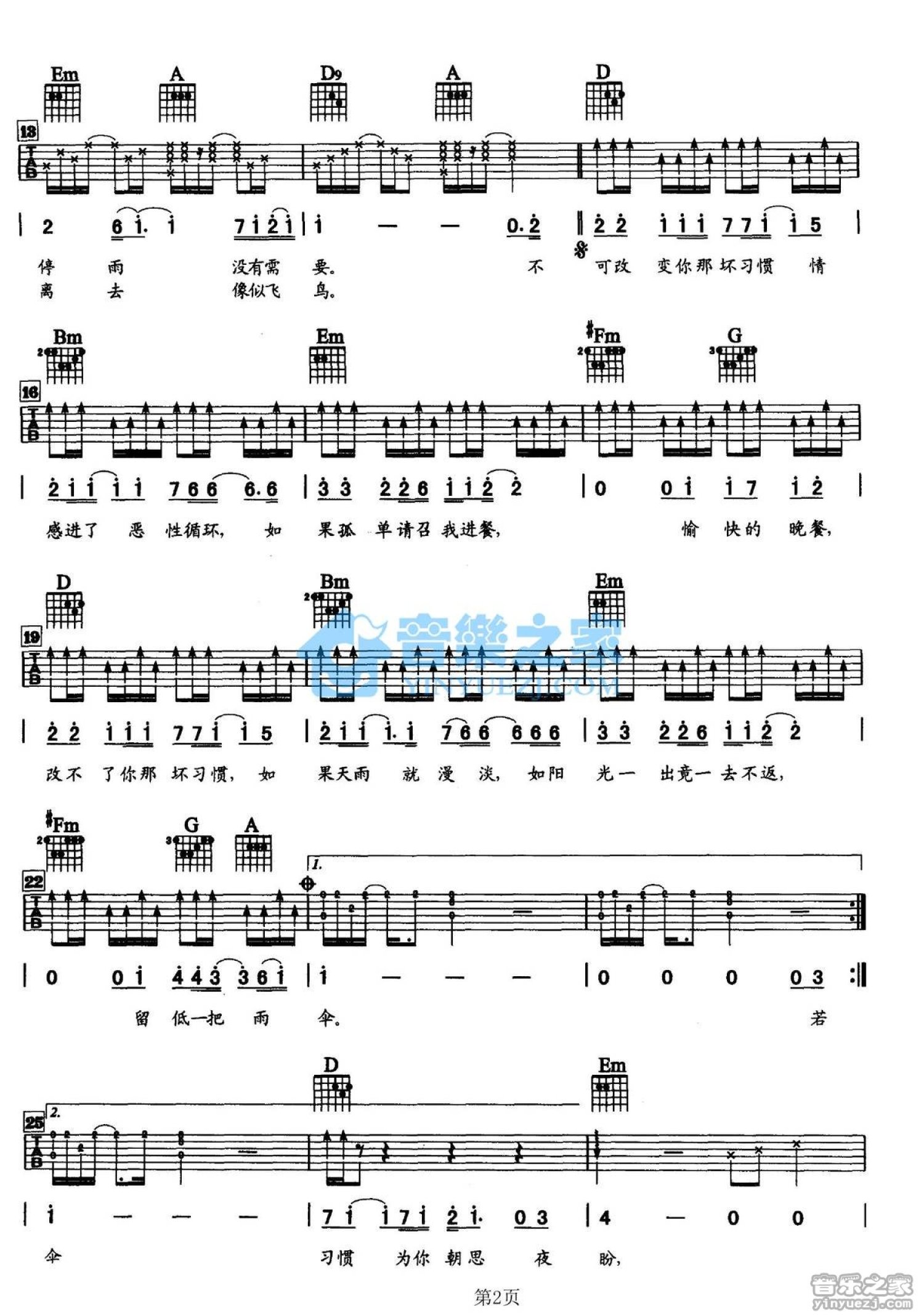 吉他弹唱D调来源:YYZJ601 浏览2021-03-18 15:33发布图谱共3页