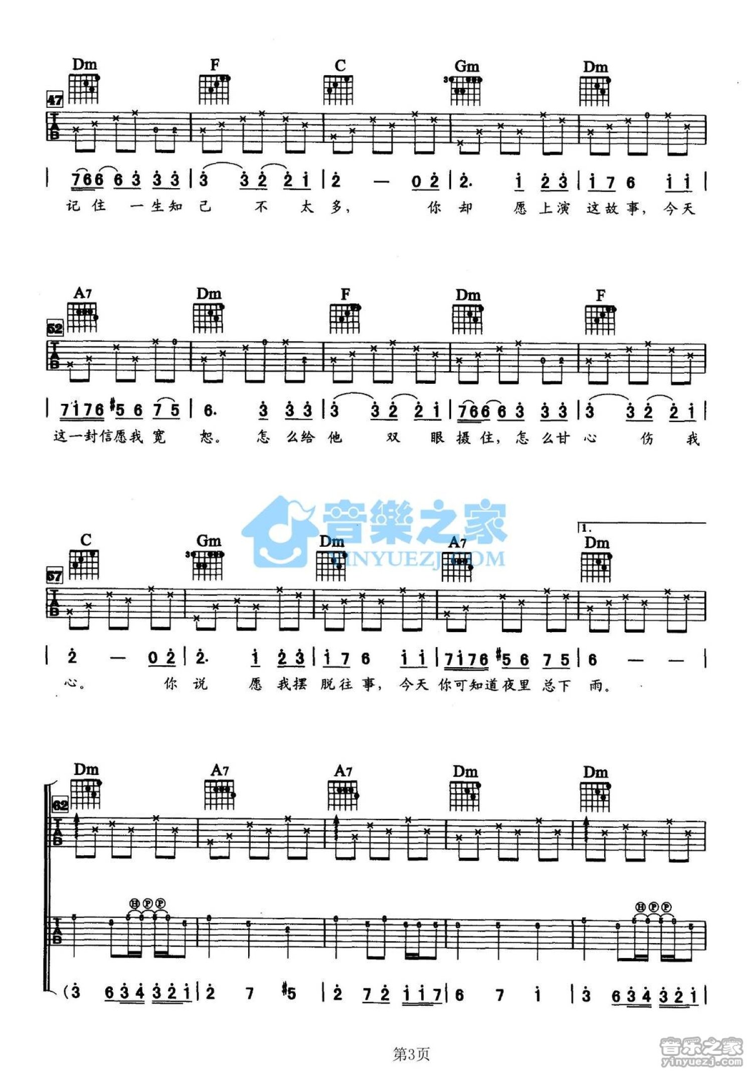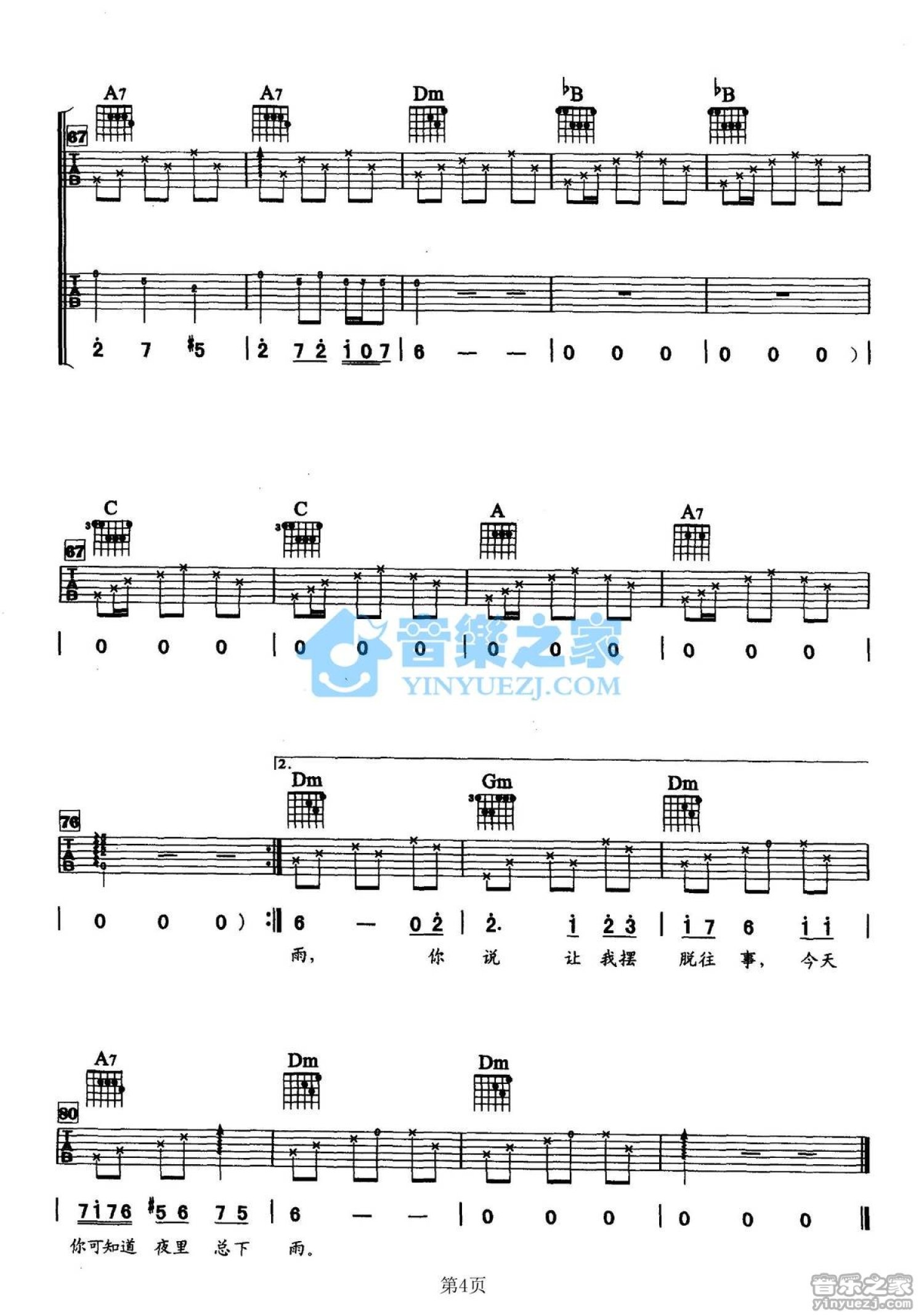 当前位置:琴谱网>吉他弹唱>今天夜里总下雨