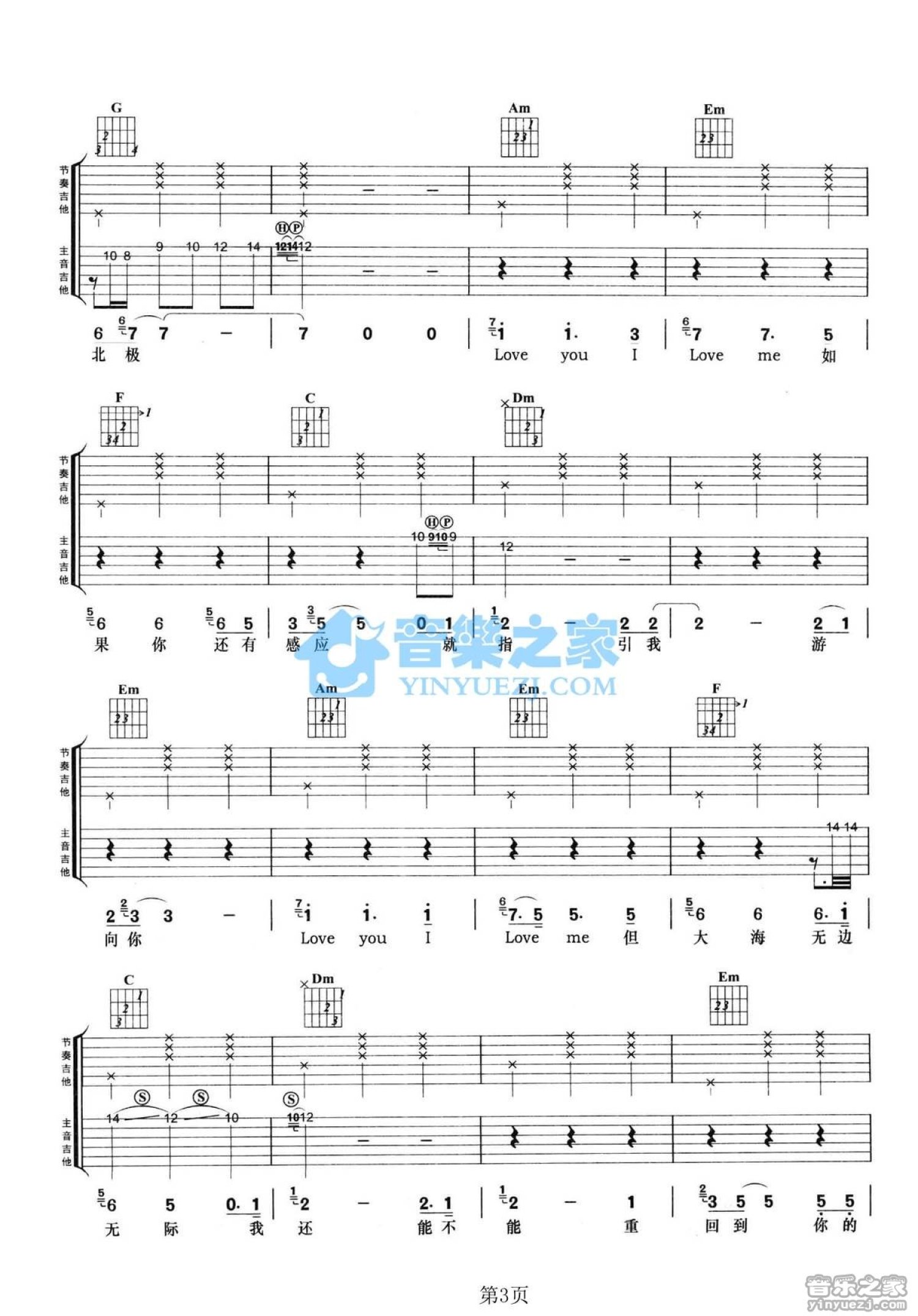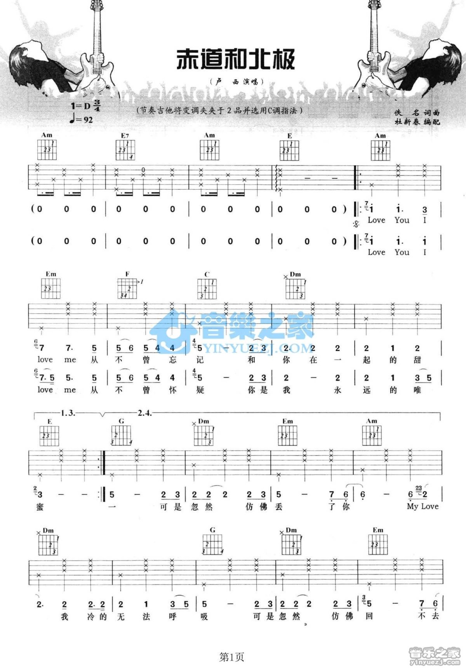 曲谱介绍: C调双吉他版卢西《赤道和北极》吉他弹唱六线谱
