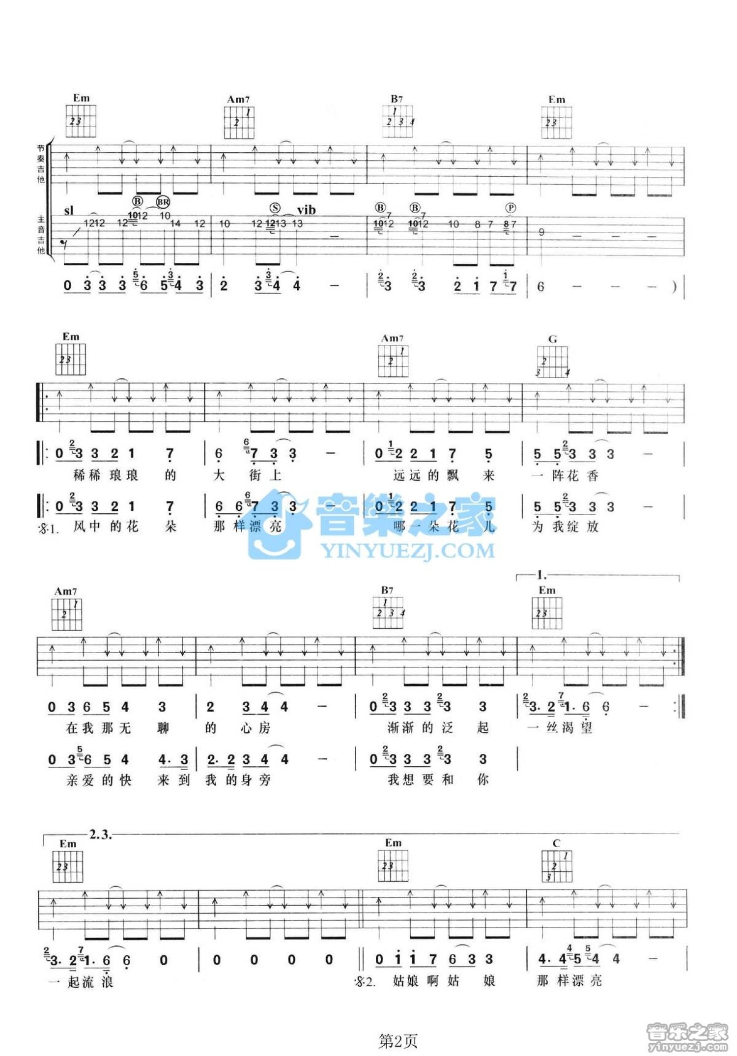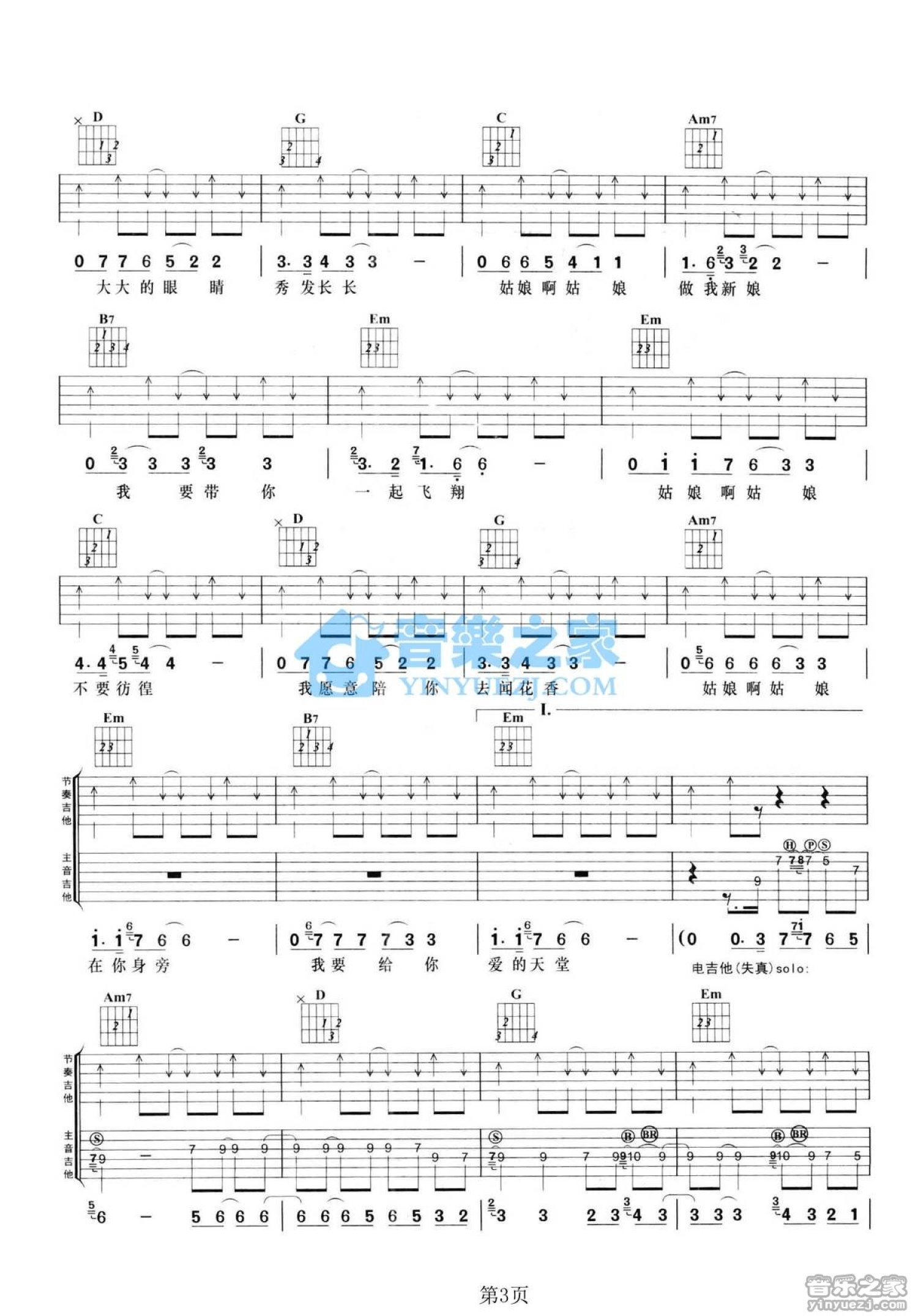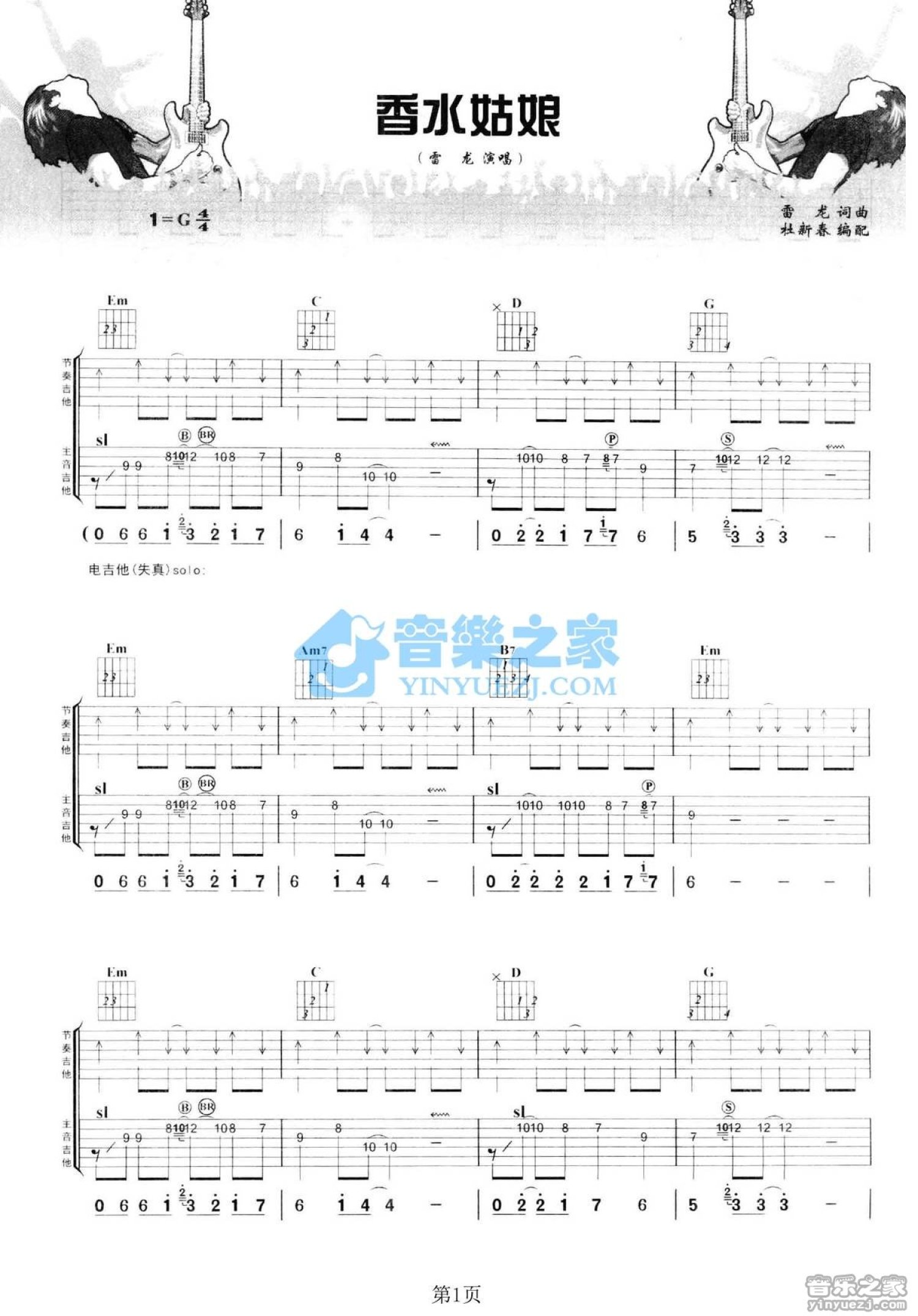 曲谱介绍: G调双吉他版雷龙《香水姑娘》吉他弹唱六线谱