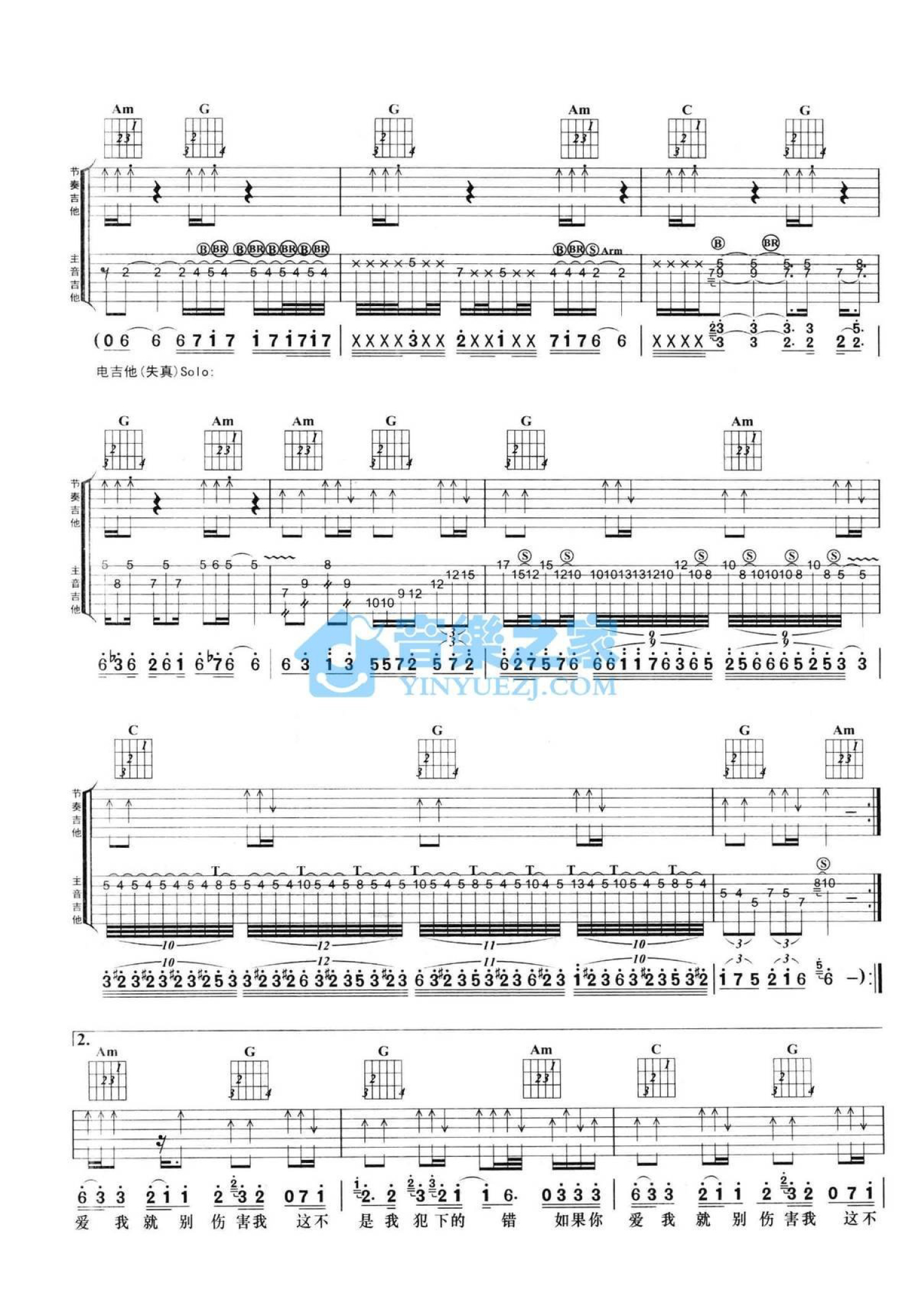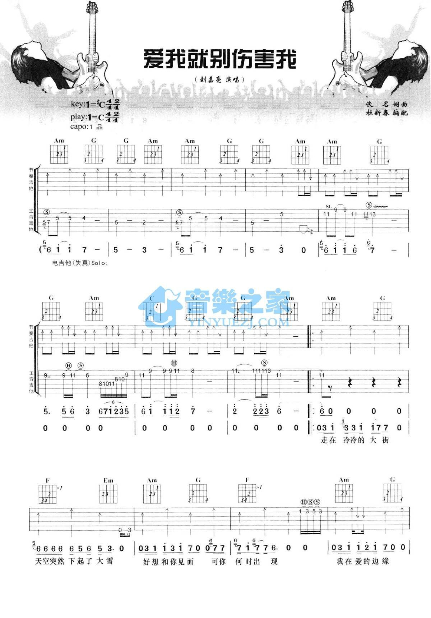 曲谱介绍: C调双吉他版刘嘉亮《爱我就别伤害我》吉他弹唱六线谱