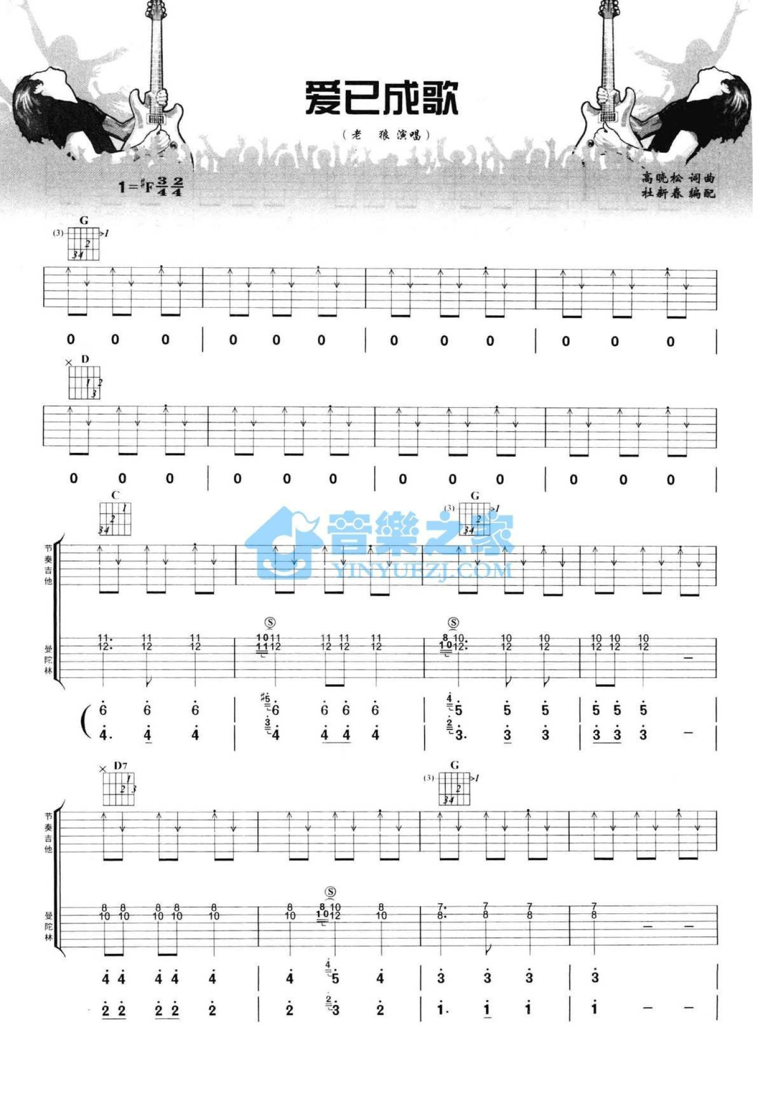 曲谱介绍: #F调双吉他版老狼《爱已成歌》吉他弹唱六线谱